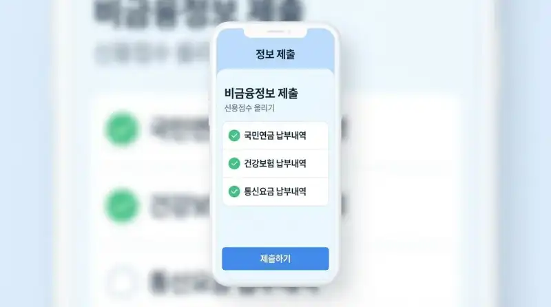 제출 방법이 의외로 간단해요. 토스 앱에서 “신용점수 올리기”를 누르면 국민연금, 건강보험, 통신비 납부 내역을 자동으로 제출할 수 있어요. 카카오뱅크에서도 “내 신용정보” 메뉴에서 본인인증 후 건강보험·소득증명 제출이 가능하고요. 나이스지키미, 올크레딧 웹사이트에서 직접 등록하는 방법도 있어요.