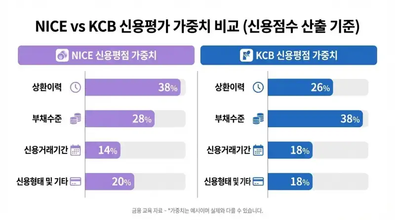 쉽게 말하면, NICE는 “빚을 제때 잘 갚는지”를, KCB는 “어떤 종류의 금융거래를 하는지”를 더 중요하게 본다는 거예요. 같은 사람이라도 NICE 890점인데 KCB는 930점이 나오는 일이 흔한 이유가 여기 있어요.