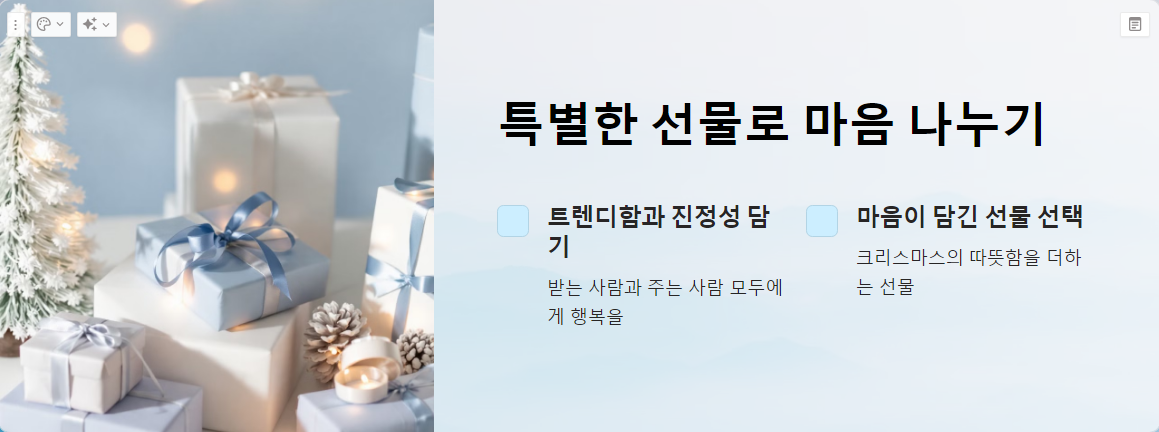 크리스마스는 마음의 온도를 높이는 시즌이죠. 감성과 함께라면 그 어떤 선물도 특별해집니다.