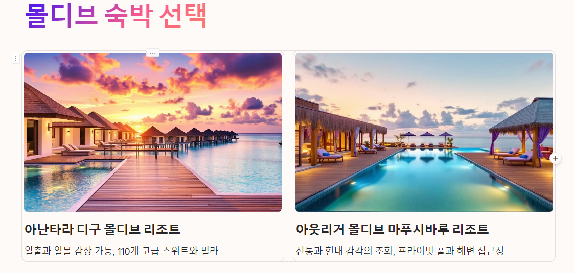 몰디브는 각양각색의 숙박 옵션으로 유명합니다. 럭셔리 리조트, 부티크 호텔, 게스트하우스 등 다양한 선택지가 있으며, 개인의 예산과 취향에 맞게 선택할 수 있습니다.