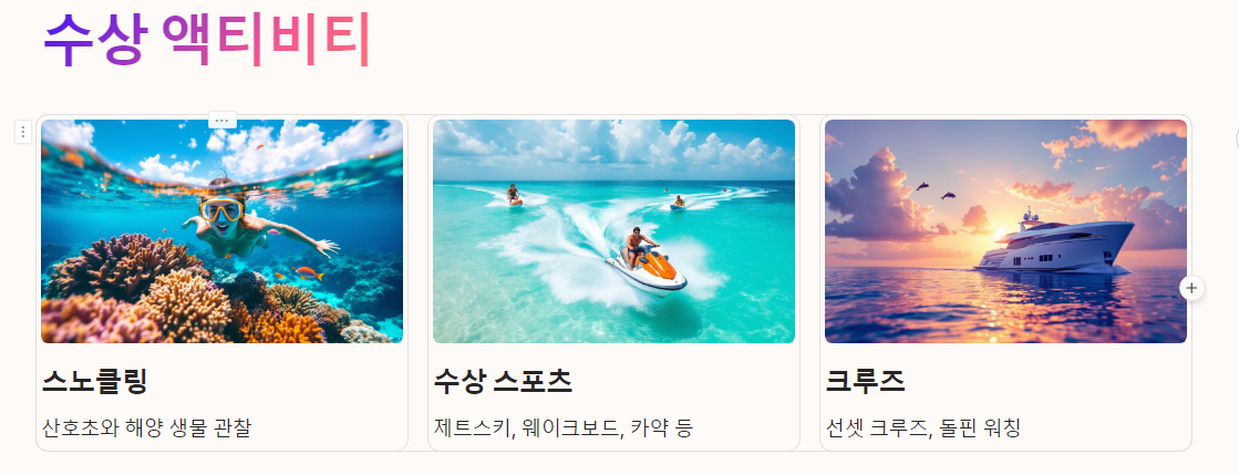 • 오전: 스노클링으로 산호초와 해양 생물 관찰