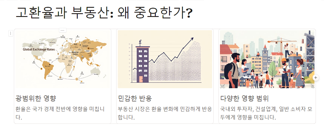 고환율은 부동산 시장에 다양한 영향을 미칩니다. 해외 투자 증가부터 건설 비용 상승, 경제 불안정성까지 고환율의 영향을 세부적으로 분석해보세요.