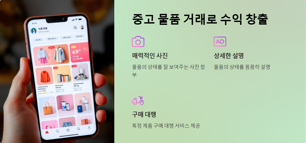 중고 물품 거래는 스마트폰을 통해 쉽게 시작할 수 있는 돈 버는 방법입니다. 중고 거래 플랫폼에 사용하지 않는 물품을 판매하거나 구매 대행 서비스를 제공하는 것도 방법입니다. 물품의 상태를 꼼꼼히 설명하고, 매력적인 사진을 첨부하면 판매율을 높일 수 있습니다.
