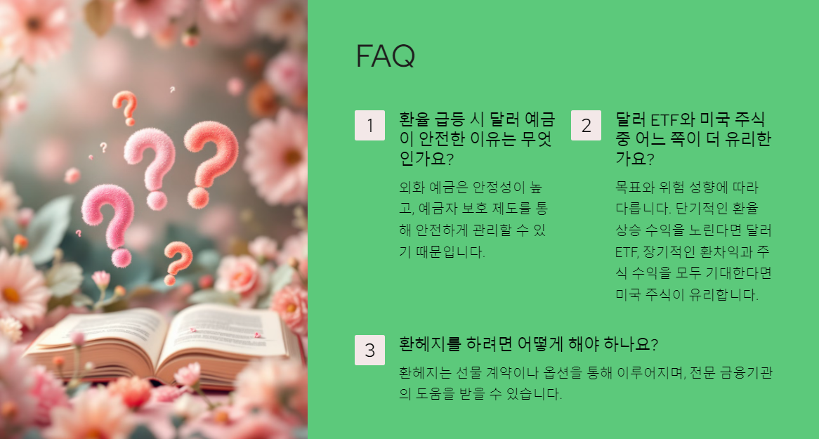 1. 환율 급등 시 달러 예금이 안전한 이유는 무엇인가요?