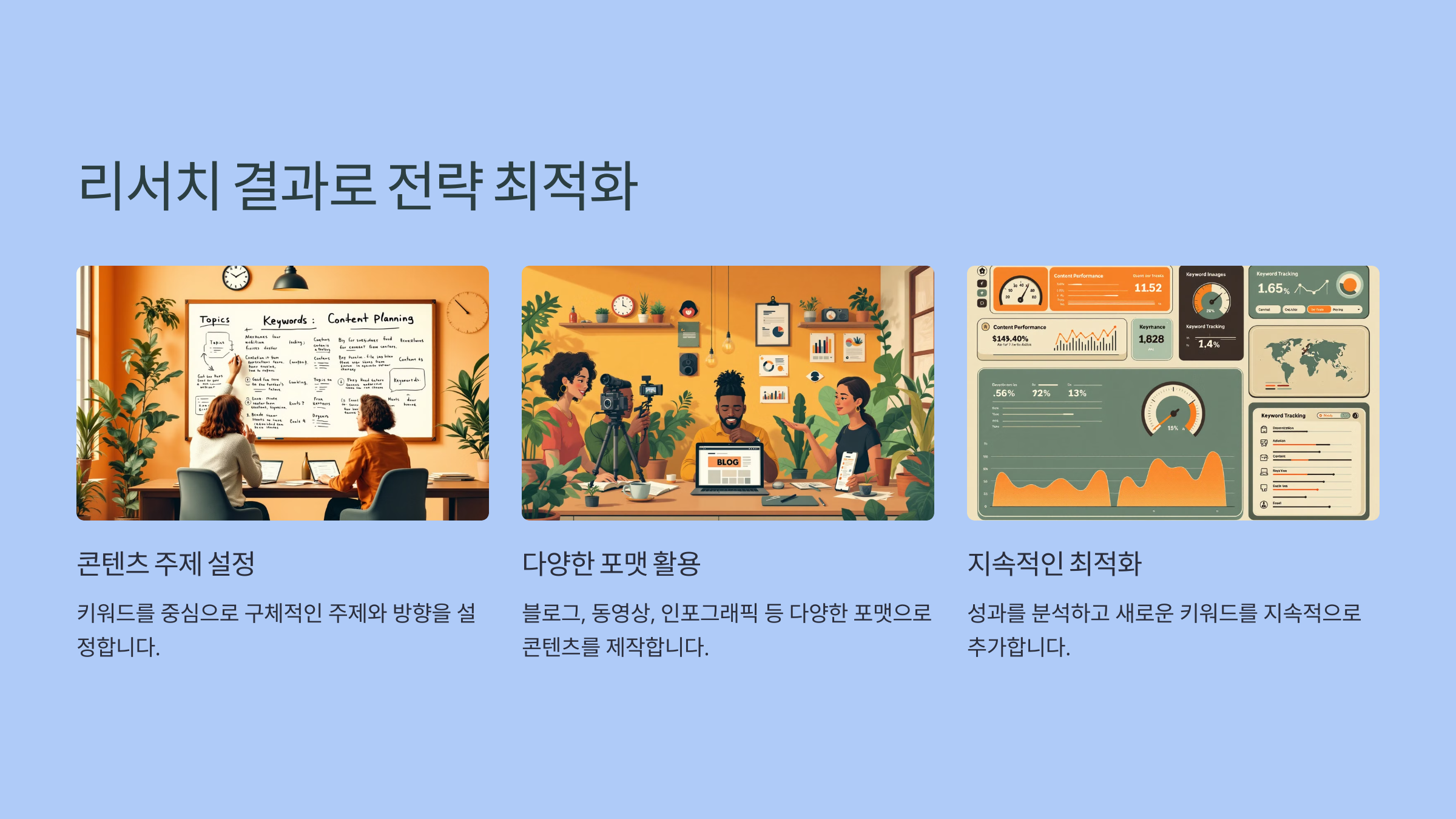 키워드 리서치에서 얻은 데이터를 활용해 콘텐츠 전략을 최적화하는 것이 중요해요. 단순히 키워드를 나열하는 것이 아니라, 이를 중심으로 콘텐츠의 주제와 방향을 구체적으로 설정해야 해요. 이를 통해 독자들의 관심을 끌고, 검색 엔진에서 높은 가시성을 확보할 수 있어요.