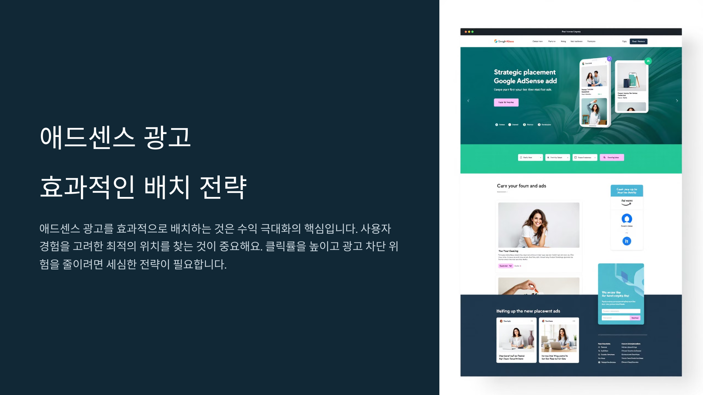 **비율 유지**도 중요한데요. 콘텐츠와 광고의 비율을 적절히 조정하여, 광고가 메인 콘텐츠보다 우위를 점하지 않도록 해야 해요. 사용자는 광고보다 정보를 얻기 위해 사이트에 방문하기 때문이죠.