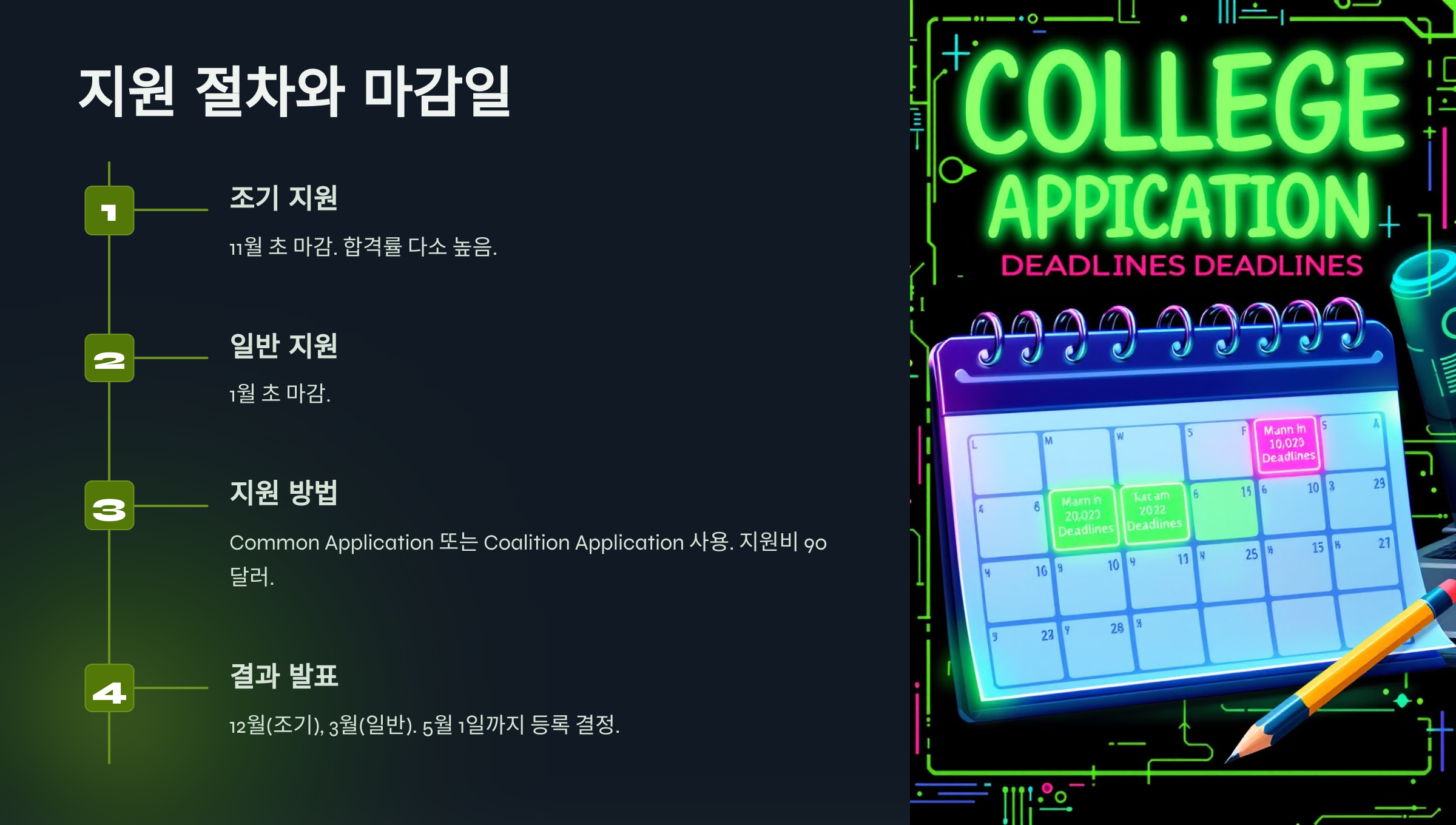 마지막으로, 지원서 마감일을 철저히 지키고, 사소한 실수가 없도록 꼼꼼히 검토하세요. 준비된 모습은 입학 사정관들에게 좋은 인상을 남길 수 있어요.