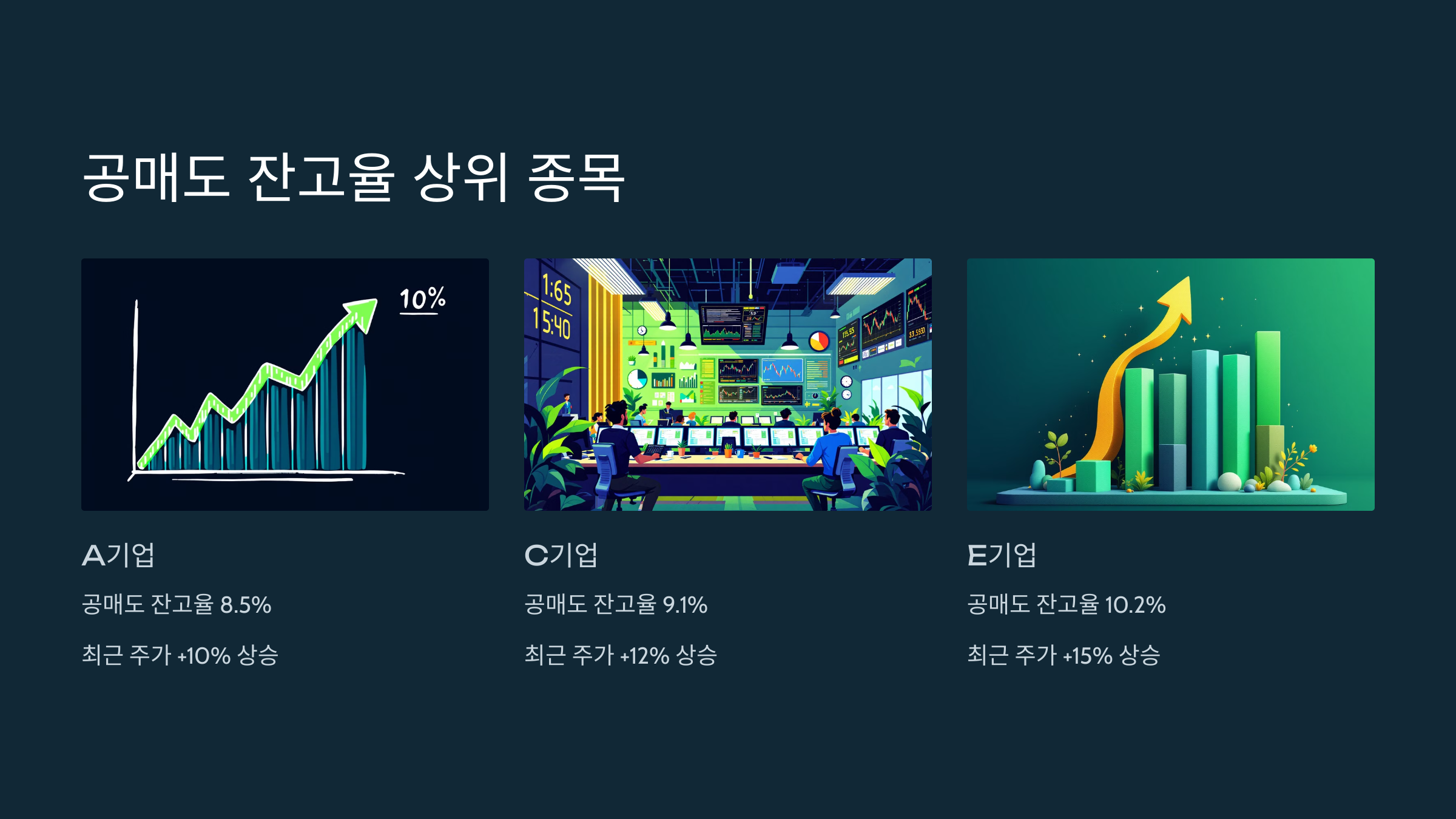 이 종목들은 공매도 비율이 높기 때문에, 주가 반등 시 급등 가능성이 있어요. 하지만 무조건 오르는 것은 아니기 때문에 신중한 투자 전략이 필요해요.
