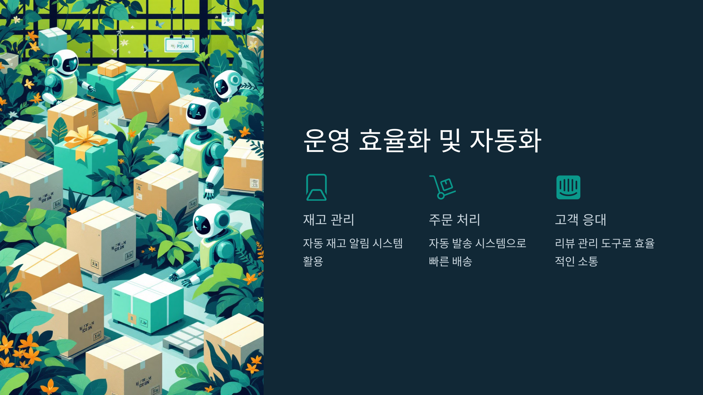 스마트스토어에서는 자동 발송 시스템, 재고 알림 시스템, 리뷰 관리 도구 등을 제공하여, 운영 효율성을 극대화할 수 있습니다. 이러한 시스템을 활용하면, 반복적인 작업을 줄이고, 더 중요한 업무에 집중할 수 있게 됩니다. 또한, 주문 처리 과정도 자동화하면, 빠르고 정확한 배송이 가능해져 고객 만족도를 높일 수 있습니다.