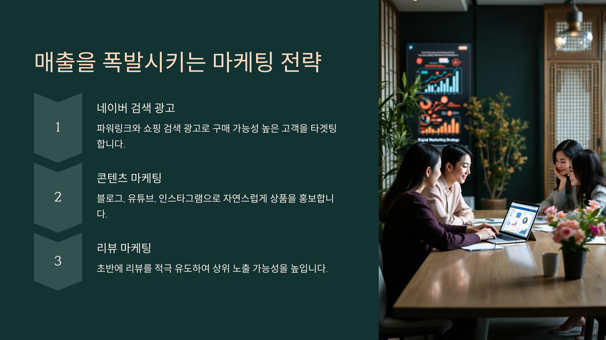이제 어떤 상품을 골라야 할지 감이 좀 오셨나요? 다음은 매출을 폭발적으로 올려줄 마케팅 전략을 알려드릴게요! 🚀