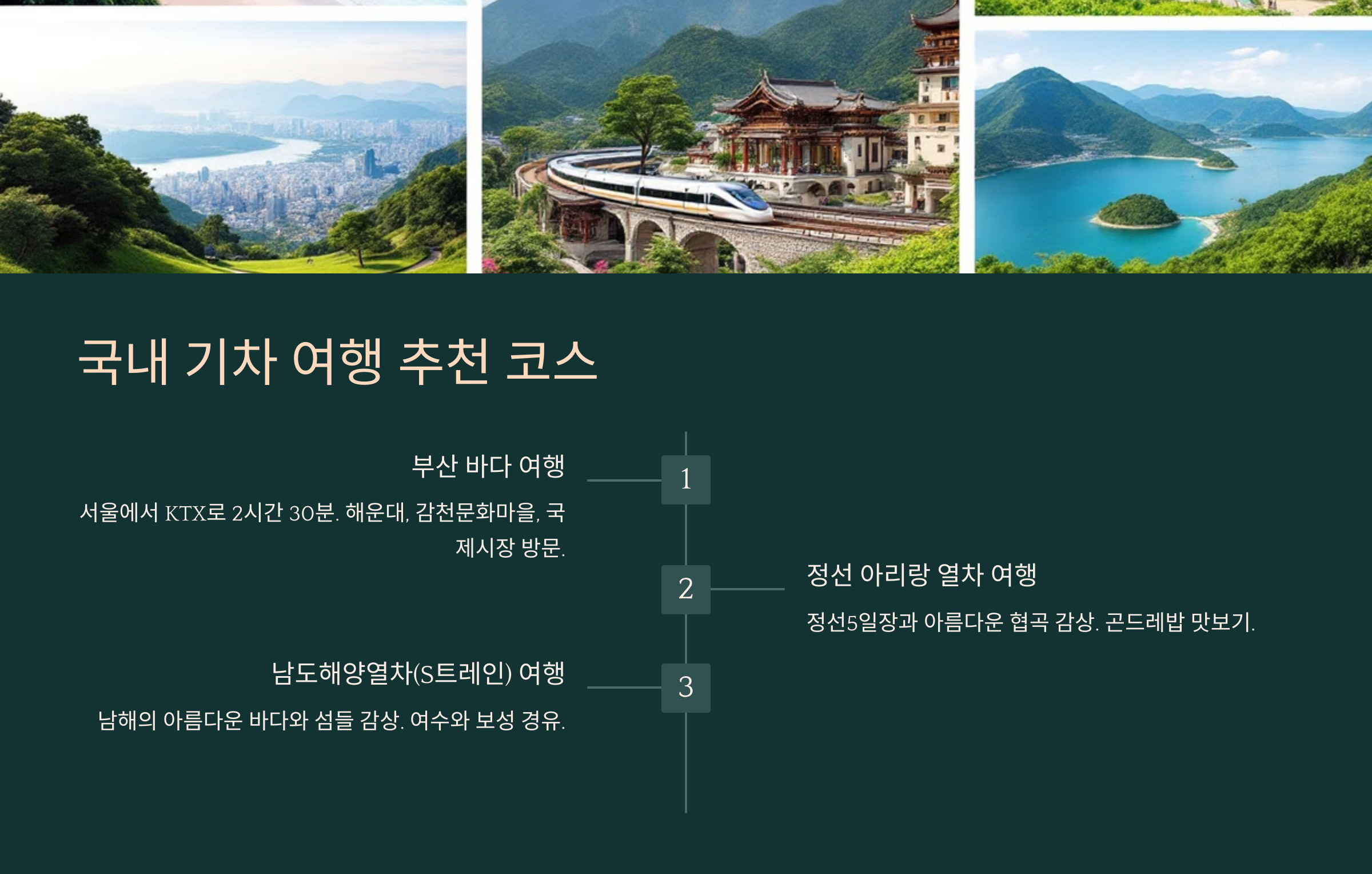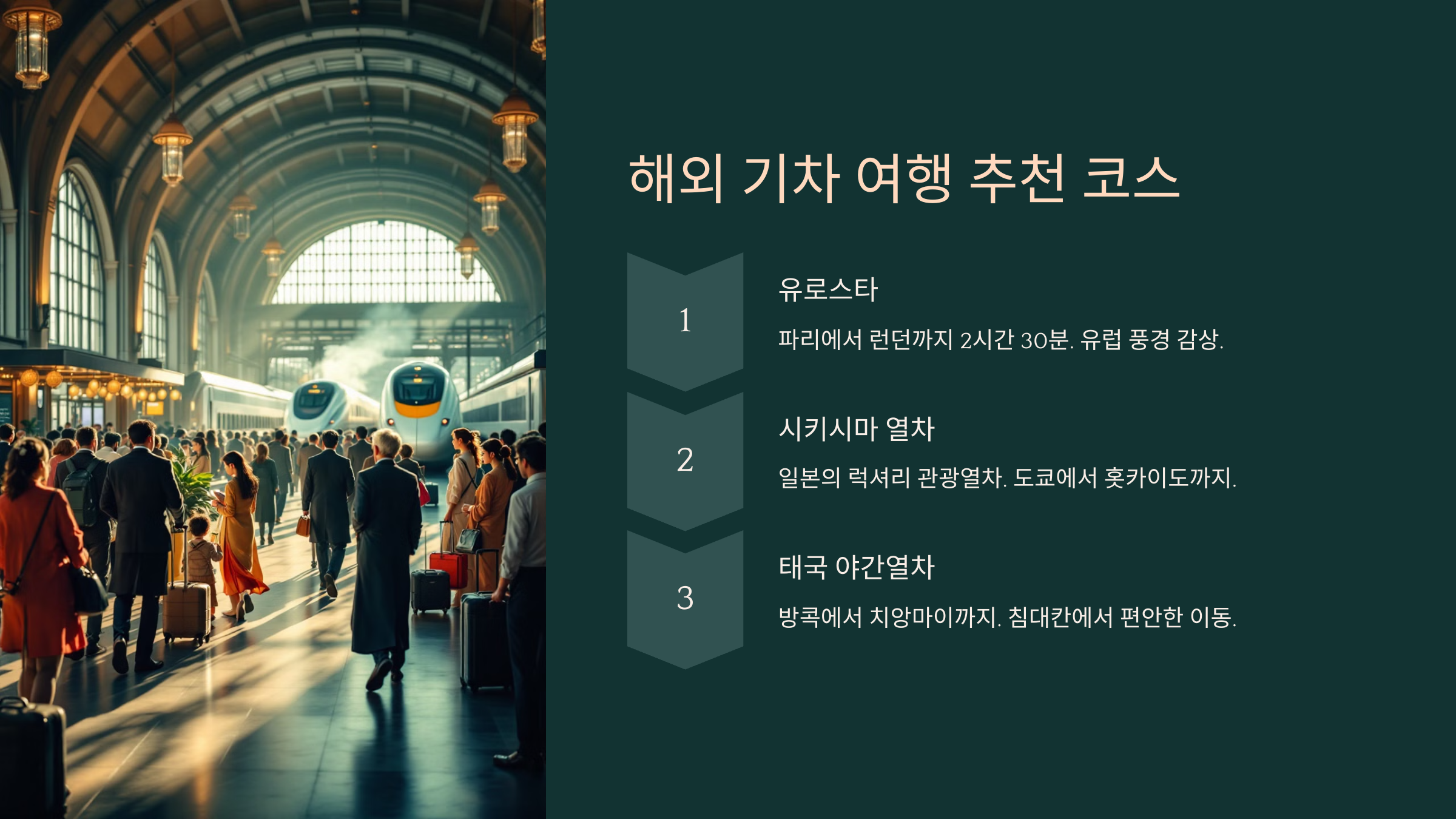 다음 섹션에서는 해외 기차 여행 코스를 살펴볼게요! 🌍🚆