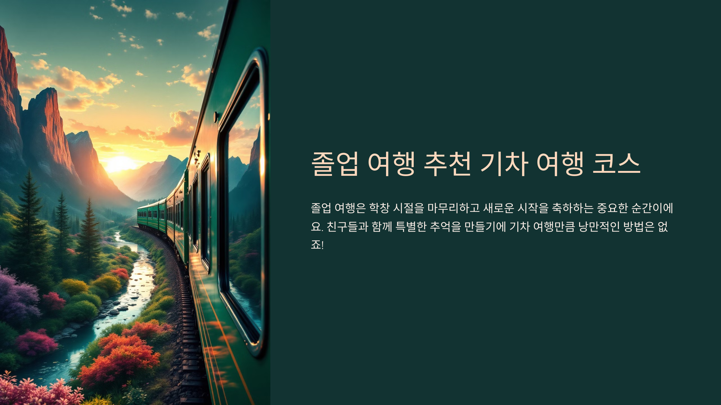 졸업 여행을 기차로 떠나면 특별한 추억을 만들 수 있어요. 여러분도 기차 여행을 계획해보세요! 🚆✨
