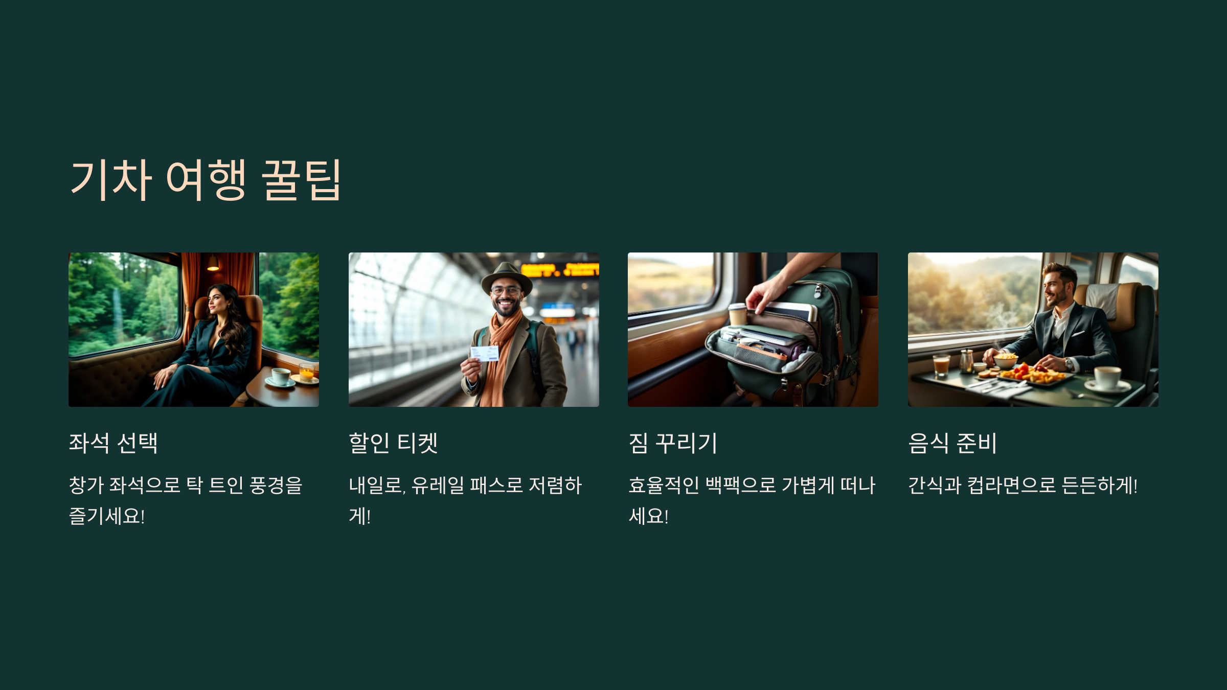이 꿀팁들을 참고하면 더욱 스마트하고 알찬 기차 여행을 즐길 수 있을 거예요! 🚆✨