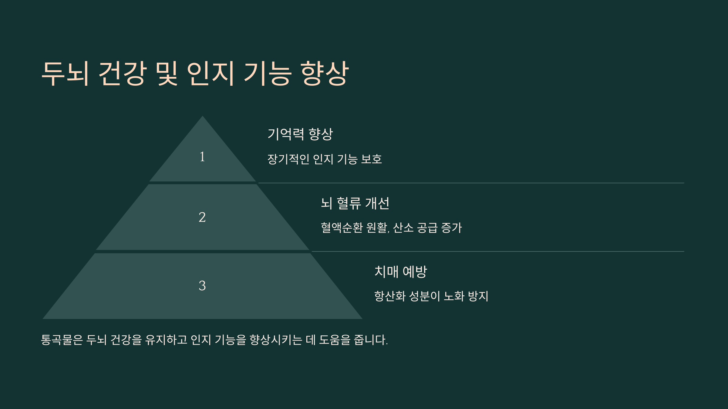 📢 통곡물을 꾸준히 섭취하면 **뇌 기능을 보호하고 기억력을 강화할 수 있어요.** 학생이나 직장인, 노년층 모두에게 유익한 식품이에요! 🧠✨