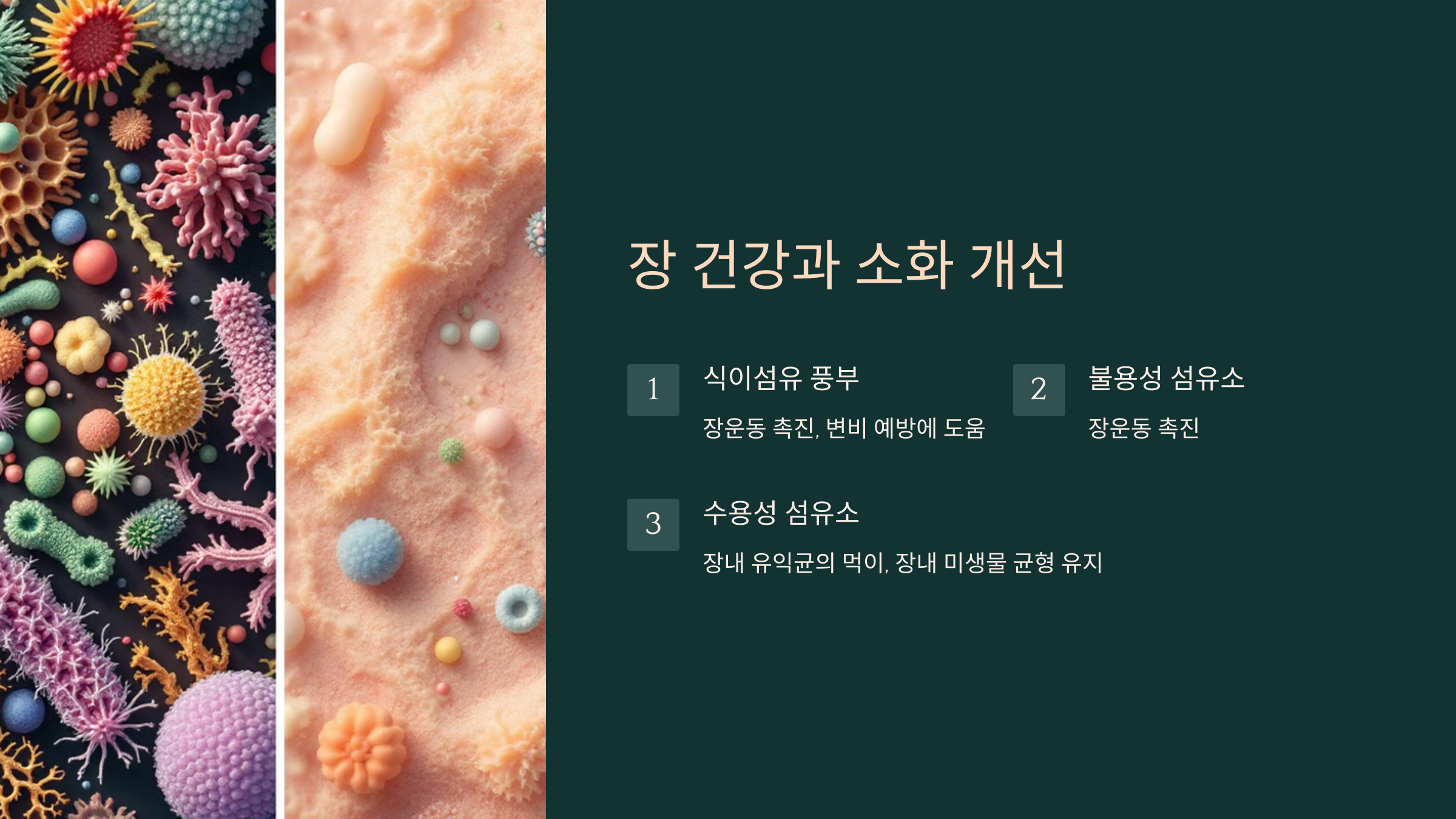 🦠 통곡물에 포함된 **불용성 섬유소**는 장운동을 촉진해 **변비를 예방**하고, **수용성 섬유소**는 장내 유익균의 먹이가 되어 **장내 미생물 균형**을 맞춰줘요.