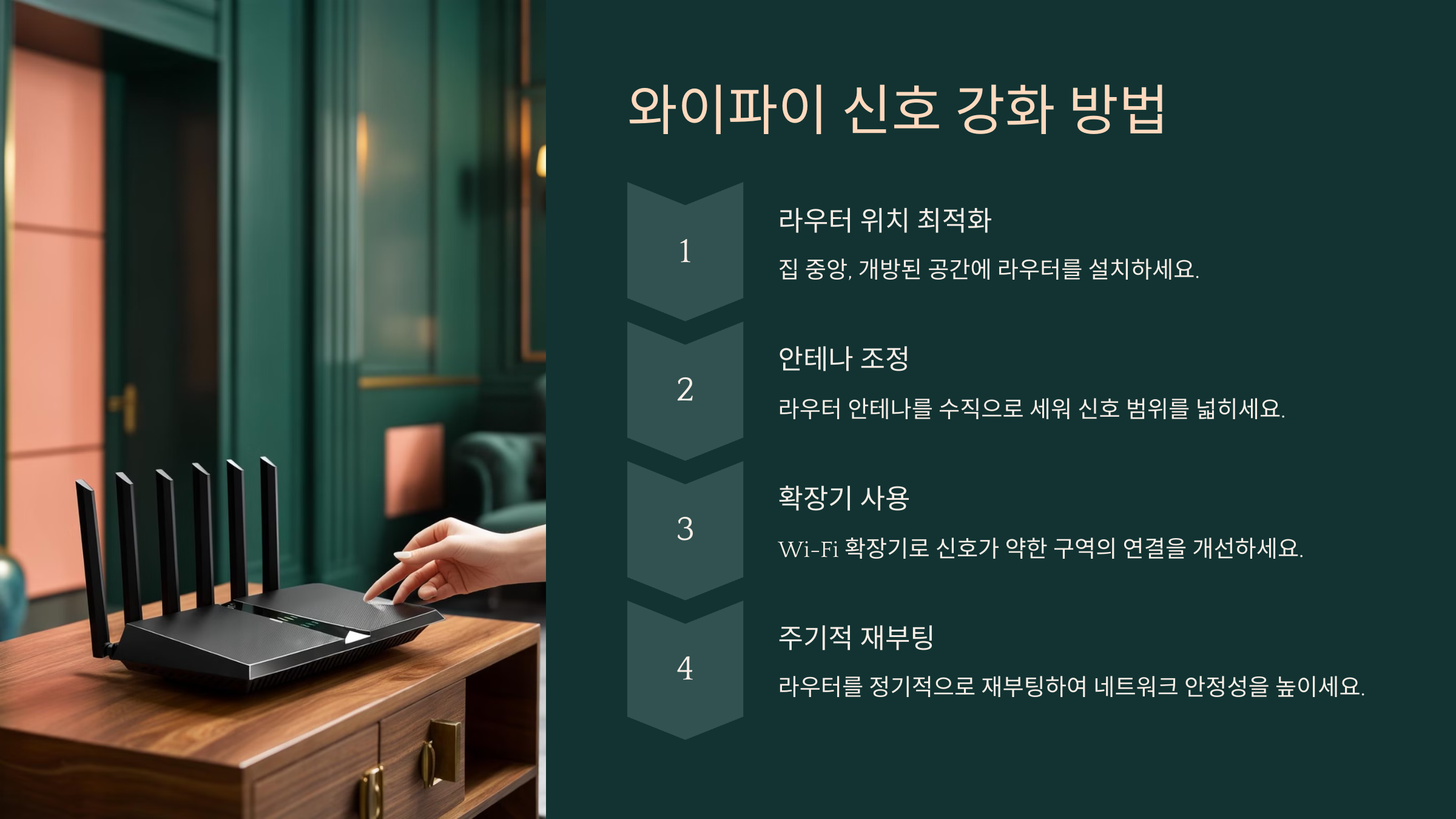 와이파이가 느리거나 아예 연결이 안 될 때는 매우 불편합니다. 하지만 대부분의 문제는 간단한 설정 변경만으로 해결할 수 있습니다. 이번 글에서는 와이파이가 안 터지는 원인부터 신호 강화 방법, 라우터와 스마트폰 설정 변경법, 공유기 교체 시기까지 자세히 알아보겠습니다.