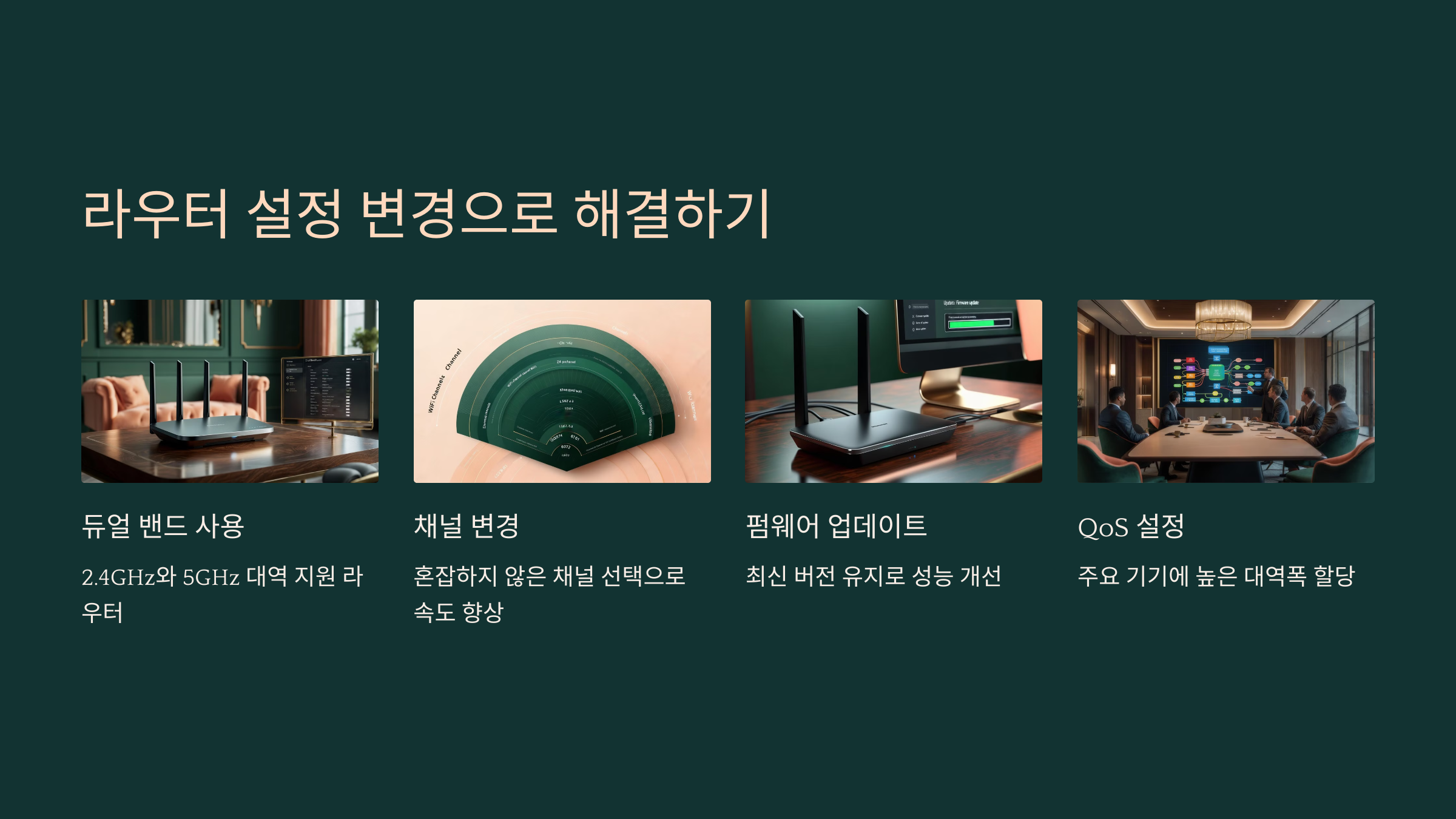 2.4GHz와 5GHz 대역을 모두 지원하는 듀얼 밴드 라우터를 사용하세요.