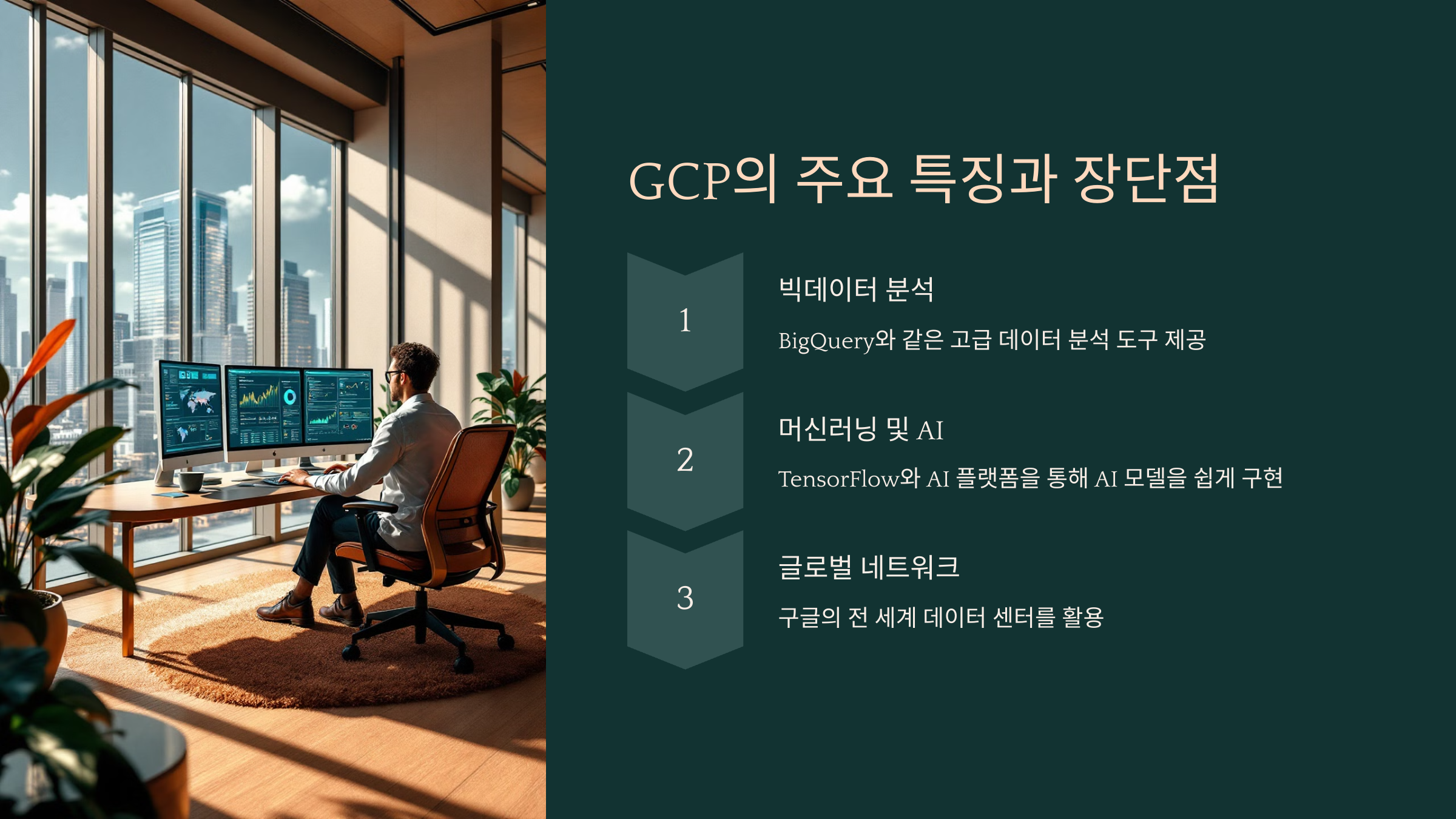 - **머신러닝 및 AI:** TensorFlow와 AI 플랫폼을 통해 AI 모델을 쉽게 구현