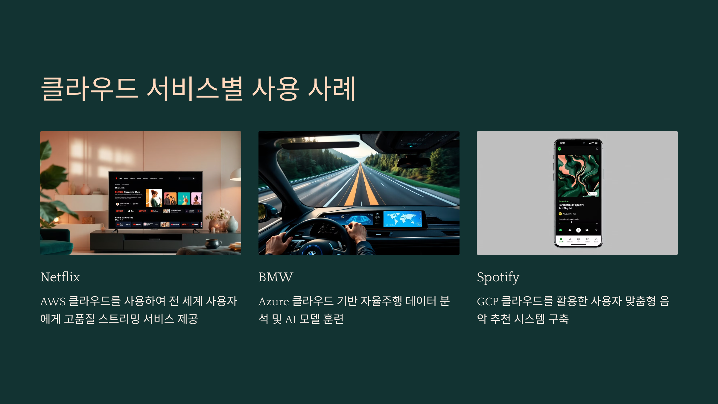 - **Netflix:** 전 세계 사용자에게 빠르고 안정적인 스트리밍 서비스를 제공