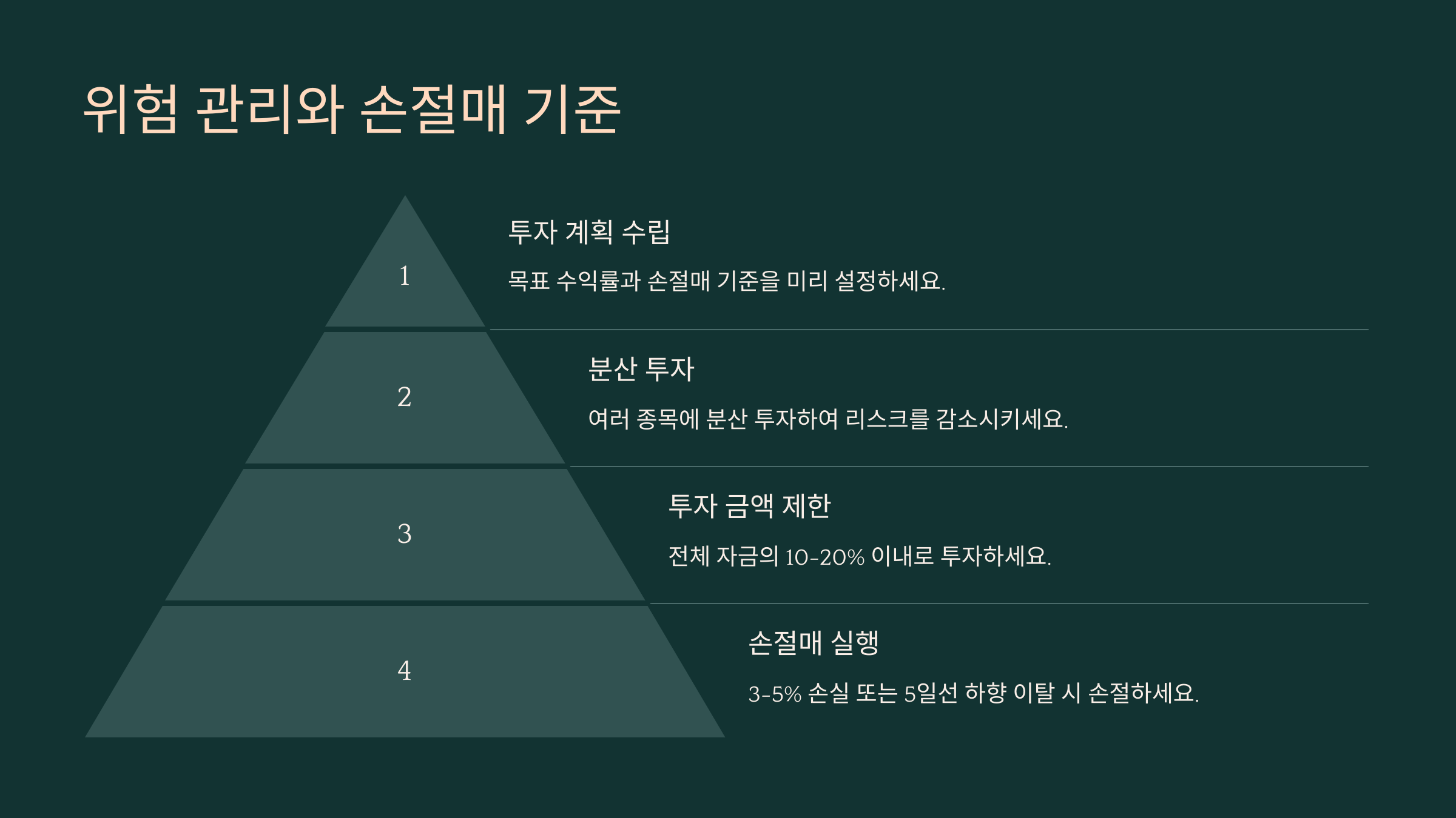 급등주에 성공적으로 투자하려면 이 전략들을 꼭 기억하세요. 이제 위험 관리와 손절매 기준에 대해서도 알아볼게요! 😊