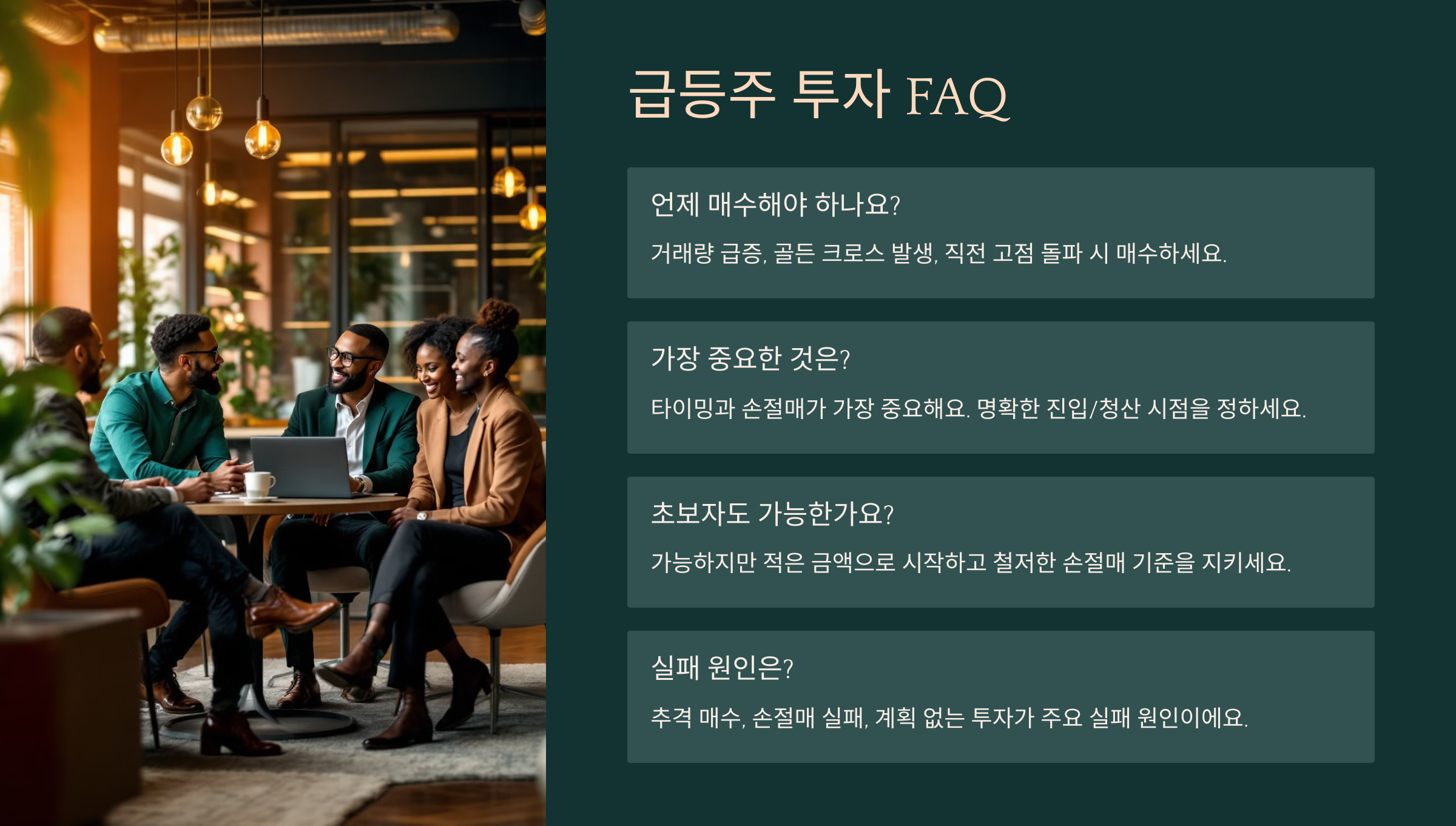이 도구들을 활용하면 급등주를 더 빠르게 포착할 수 있어요. 이제 마지막으로 자주 묻는 질문(FAQ)을 확인해 보세요! 😊