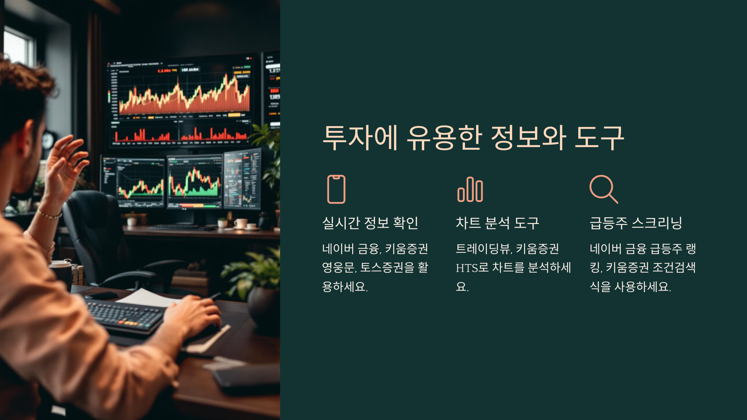 급등주를 잡기 위해서는 다양한 정보와 도구를 활용해야 해요. 실시간 정보와 차트 분석 도구를 적절히 사용하면 성공 확률이 높아져요. 😊