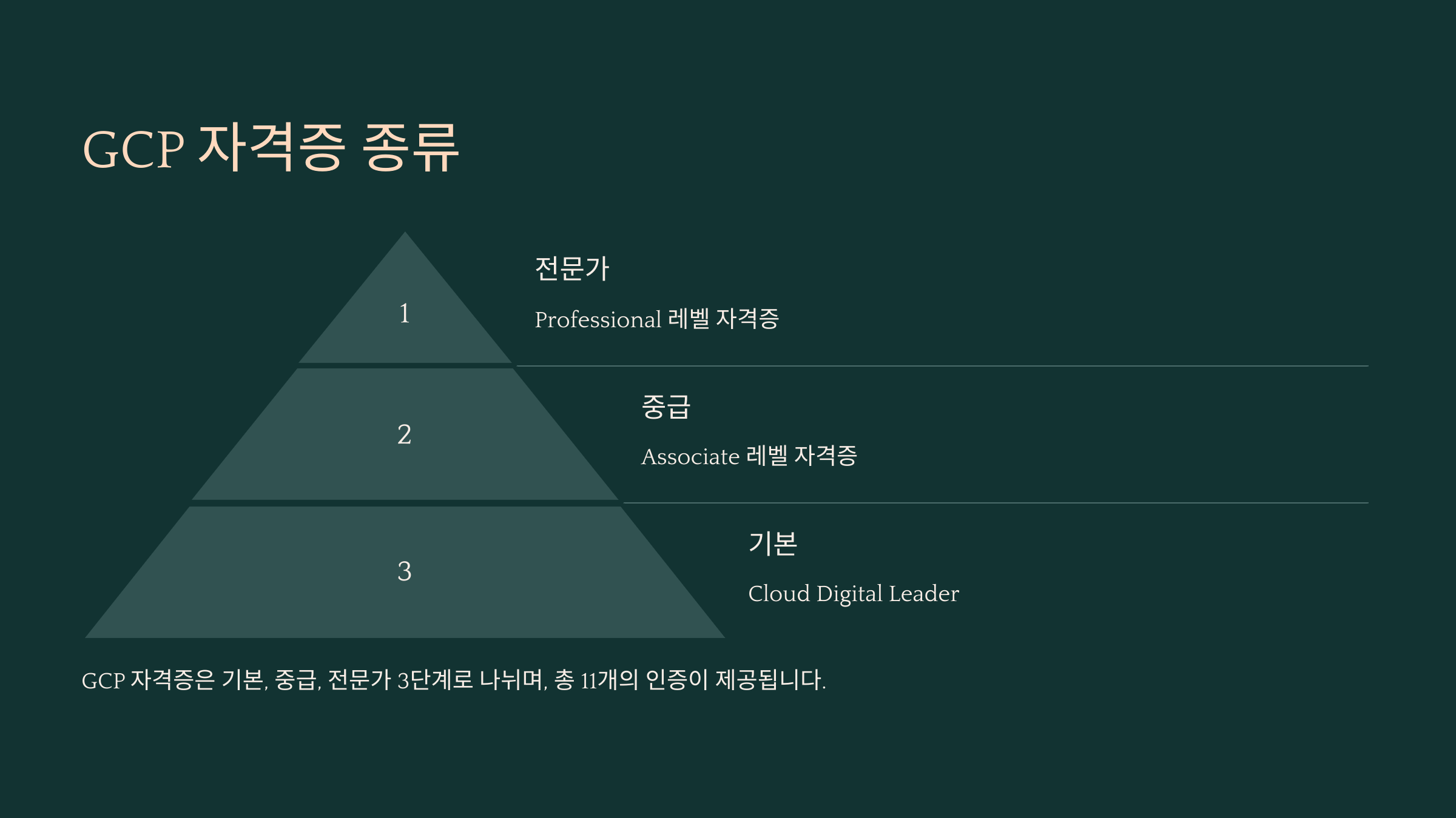 구글 클라우드(GCP) 자격증은 기본, 중급, 고급 3단계로 나뉘며, 총 11개의 인증이 제공돼요. 🏆
