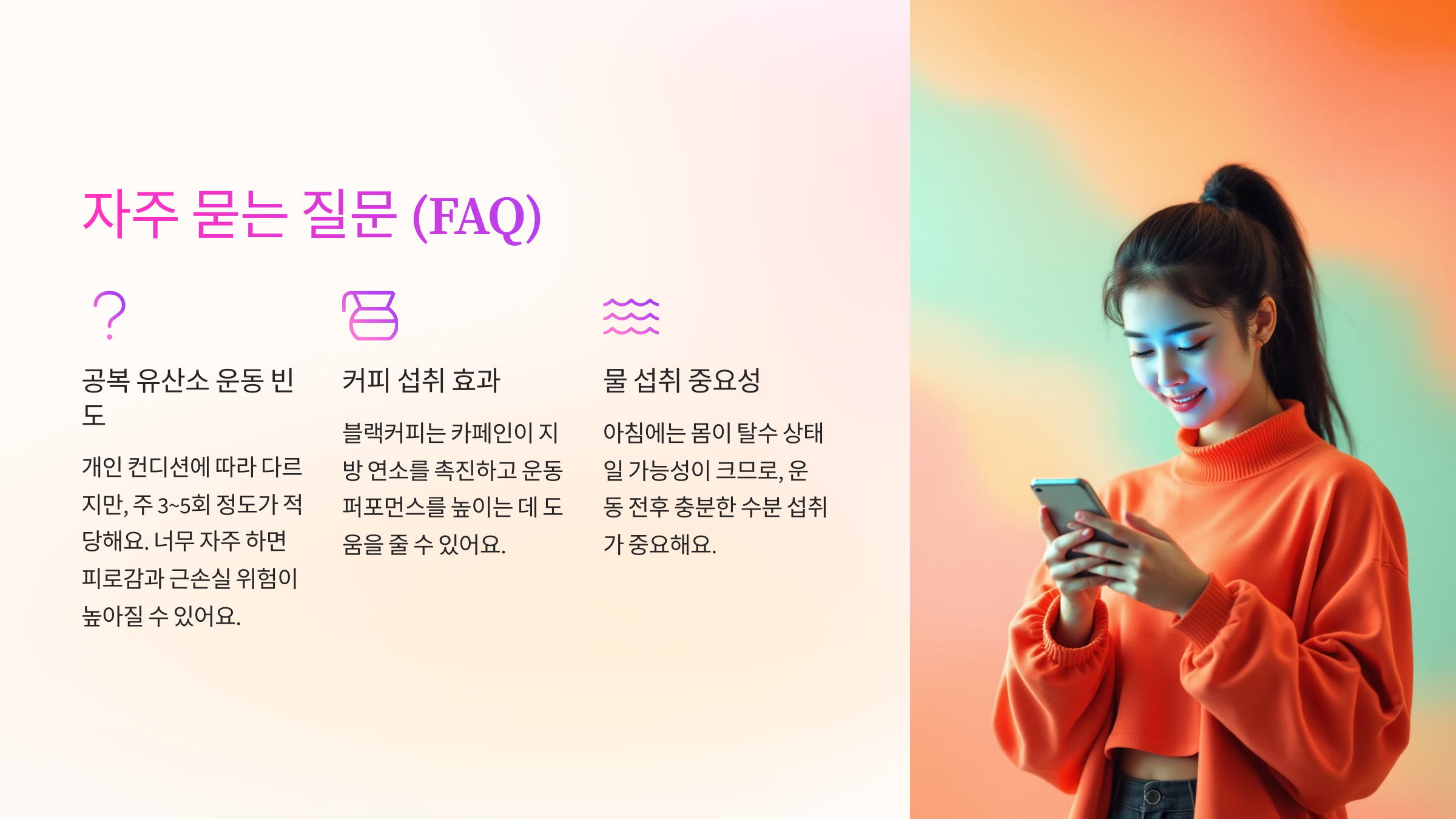 이 원칙을 잘 지키면 공복 유산소 운동을 더욱 안전하고 효과적으로 할 수 있어요! 🚴‍♀️