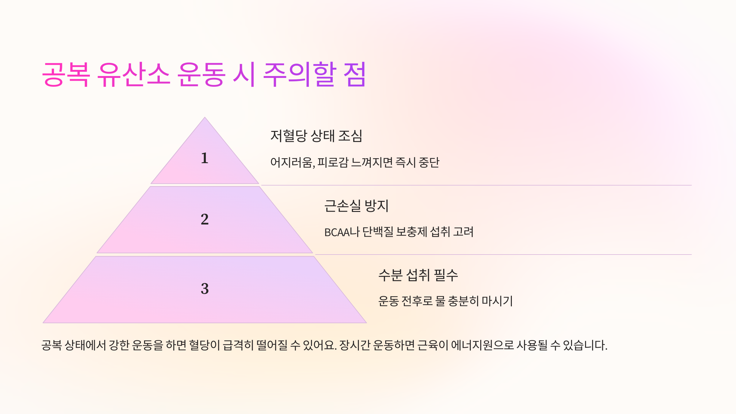 공복 유산소 운동을 안전하게 하려면 본인의 컨디션을 잘 체크하고, 올바른 방법으로 실천해야 해요! 🏃‍♂️