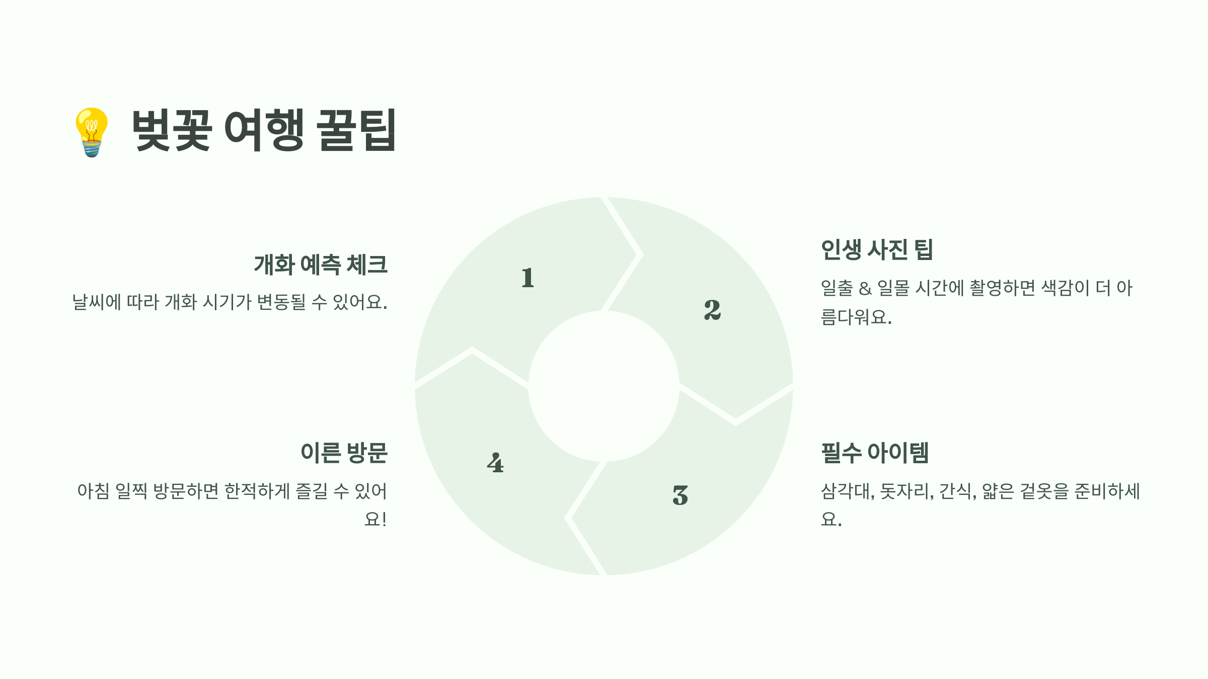 ✅ 다음으로, 벚꽃 여행을 더욱 즐겁게 만들어 줄 꿀팁을 소개할게요! 💡