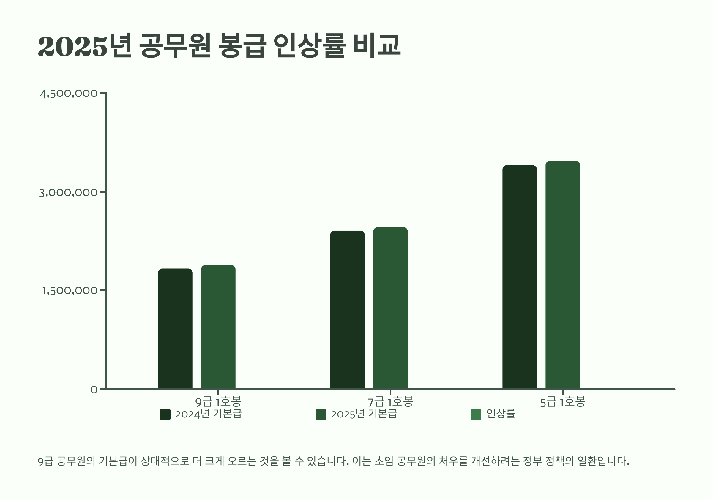 ✔ 9급 공무원: 기본급 인상폭이 가장 크며, 초봉이 기존 대비 약 5~7만 원 증가