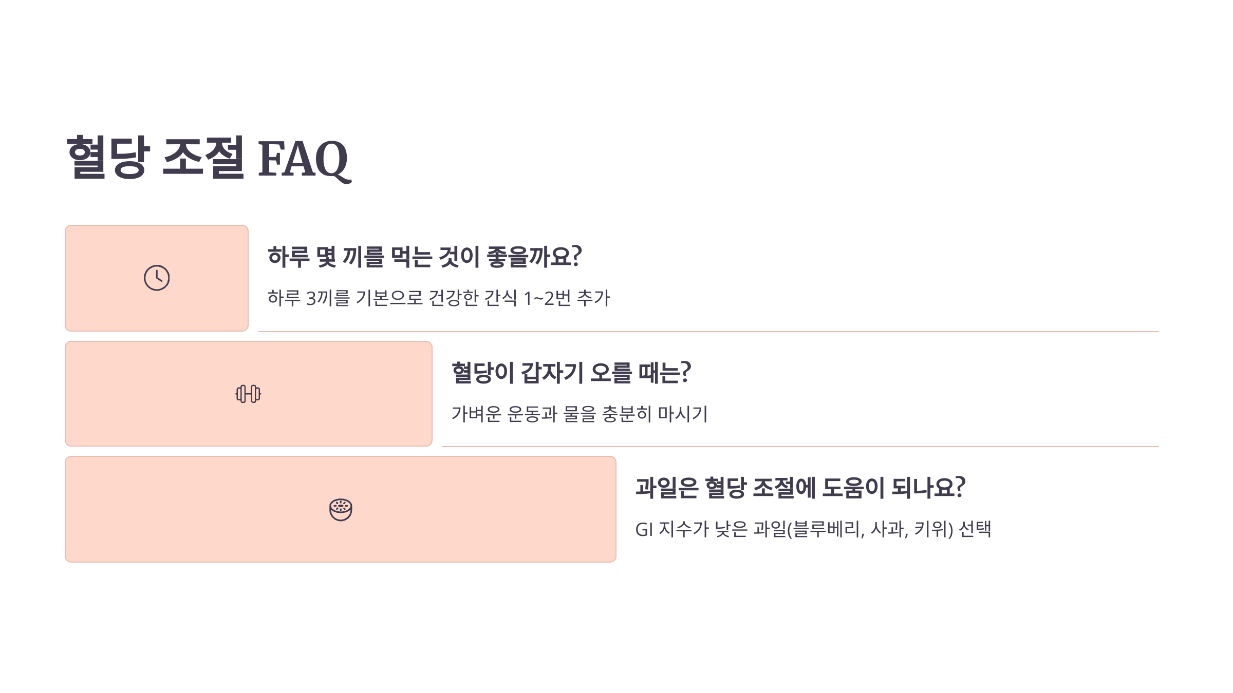 이제 혈당 조절에 대한 궁금한 점을 해결할 FAQ를 확인해볼까요? ❓