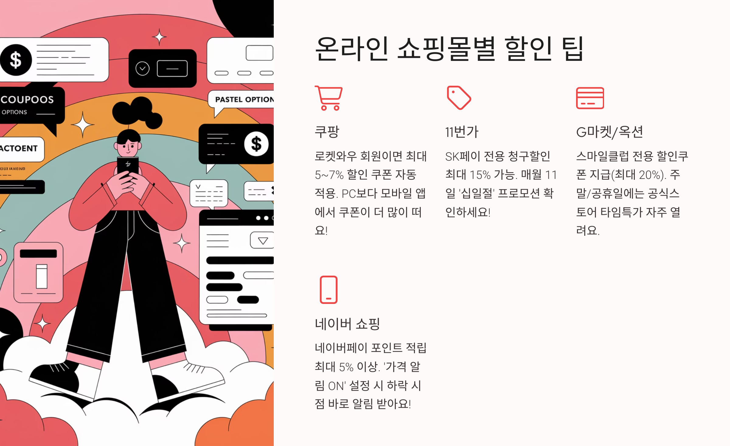 이제 사이트는 알았으니, 각각의 온라인 쇼핑몰에서 어떻게 할인받는지! 실전 팁을 다음 섹션에서 알려드릴게요. 💳 할인 받는 스킬, 꼭 배워두세요!