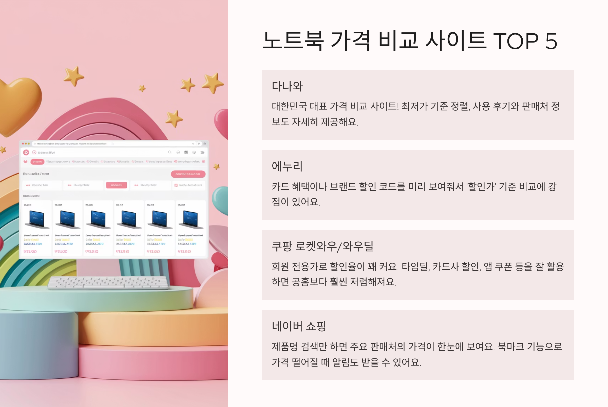 같은 모델인데도 구매처에 따라 10만 원 이상 차이가 나는 거, 많이 경험해보셨죠? 특히 노트북처럼 고가의 전자제품은 최저가를 잘 찾는 것만으로도 진짜 현명한 소비가 돼요.🧾