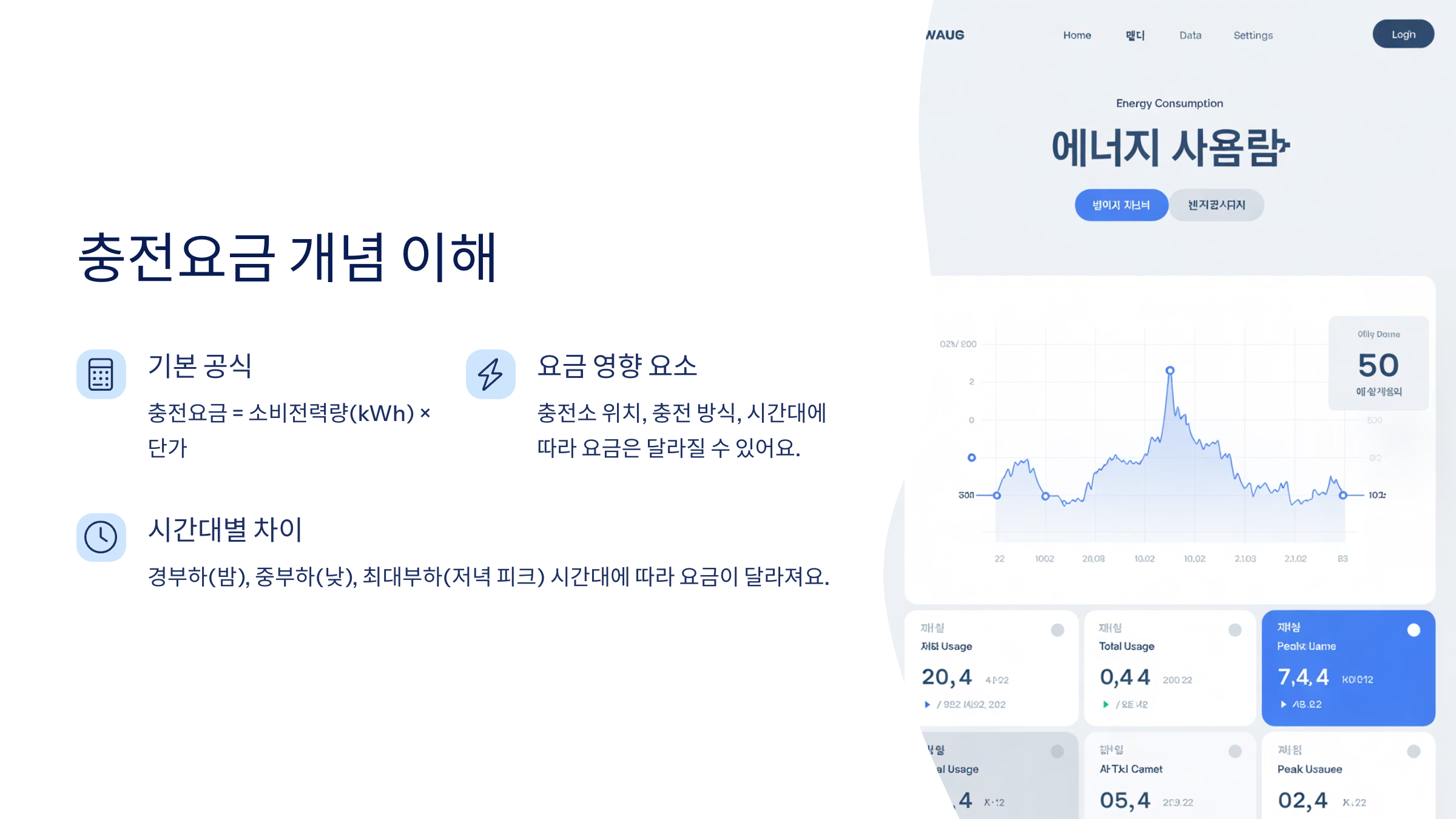 전기요금은 또한 경부하(밤), 중부하(낮), 최대부하(저녁 피크)로 나뉘며, 같은 충전량이라도 시간대에 따라 요금이 바뀔 수 있어요. 밤 11시 이후 완속충전은 특히 요금이 저렴한 시간대랍니다! 🌙