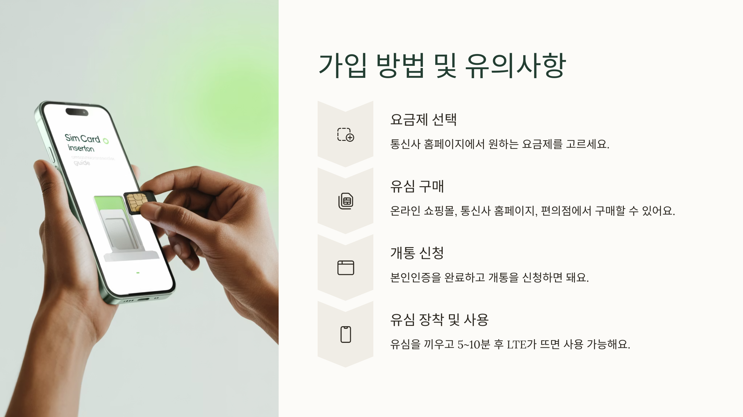 | 4단계 | 유심 장착 | APN 자동 설정 확인 |
