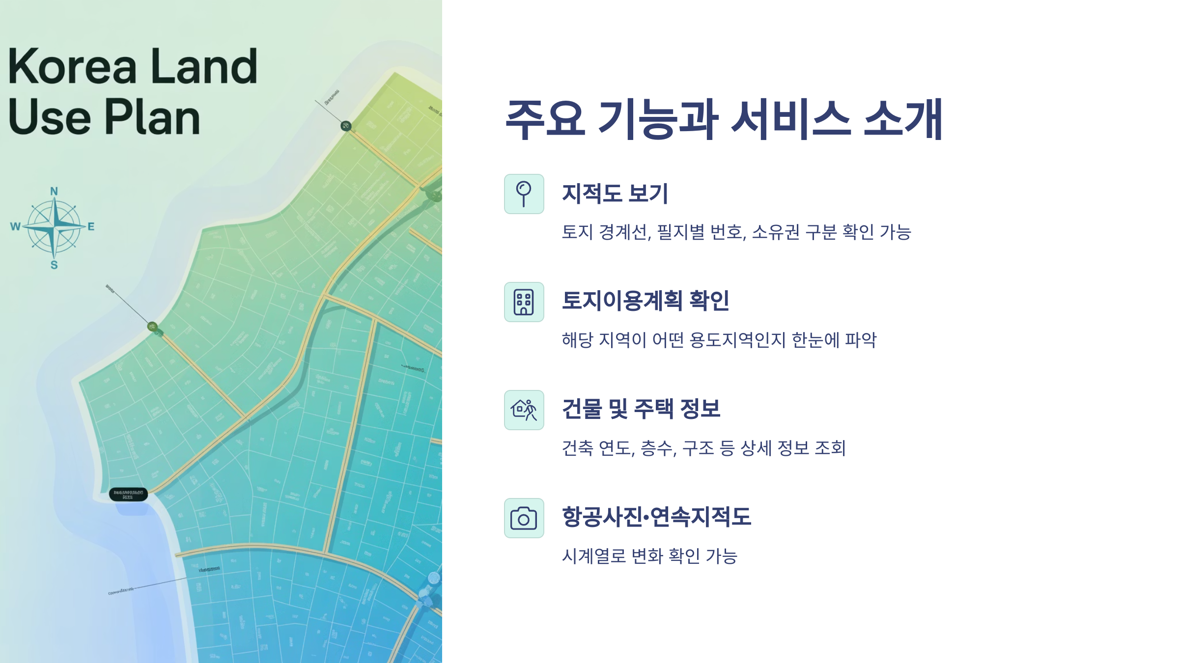 이 플랫폼은 map.ngii.go.kr 주소를 통해 접속 가능하고, PC와 모바일 모두 지원돼요. 사용자는 무료로 토지대장, 지적도, 항공사진, 건물 정보, 용도지역 등 다양한 정보를 검색하고 출력할 수 있어요.