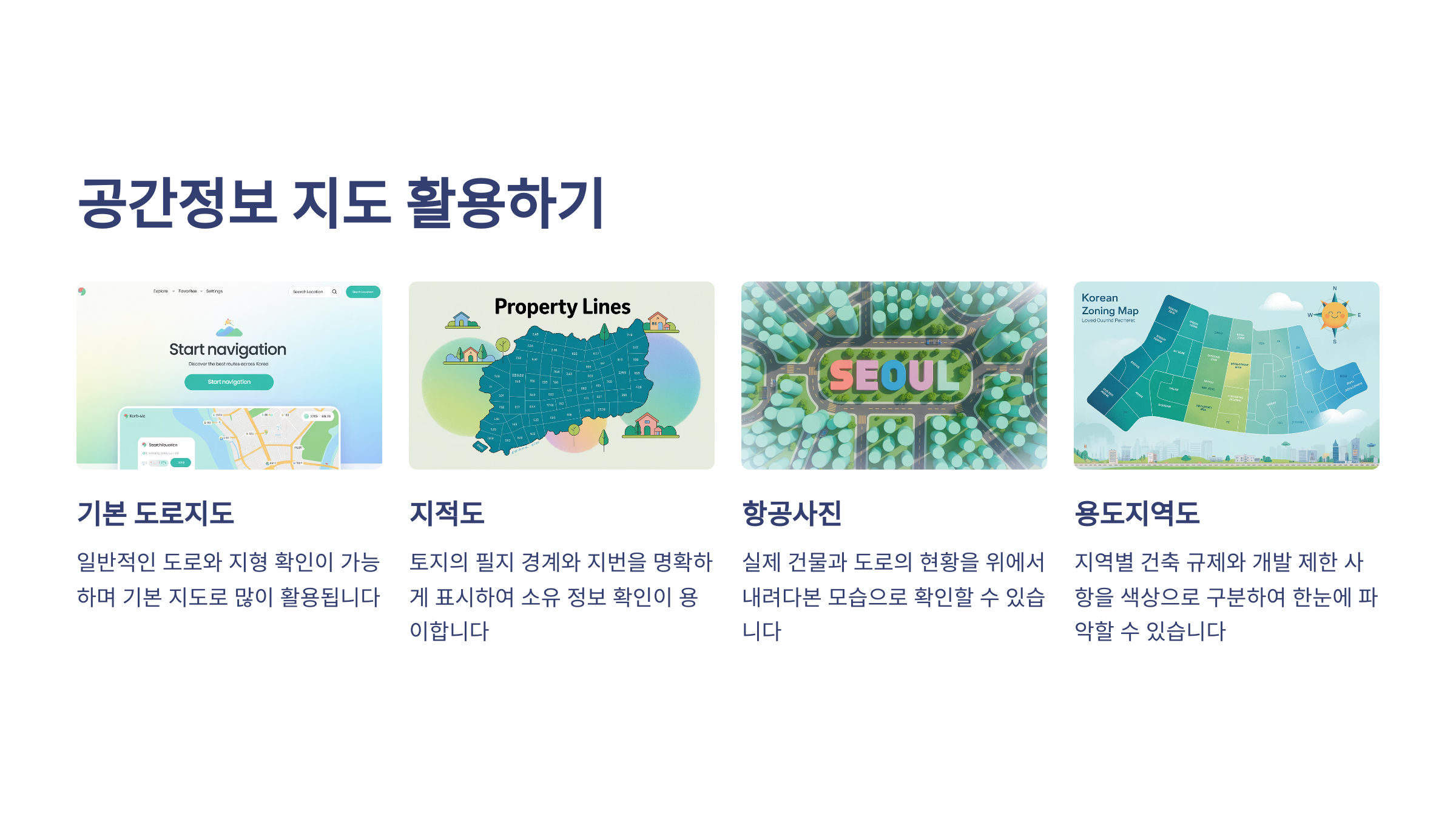 이렇게 간단한 검색만으로도 수많은 국토 정보를 확인할 수 있다니 정말 유용하죠? 이제 지도로 공간 정보를 더 깊이 있게 확인해볼 차례예요! 다음은 공간정보 지도 활용하기예요! 🗺️