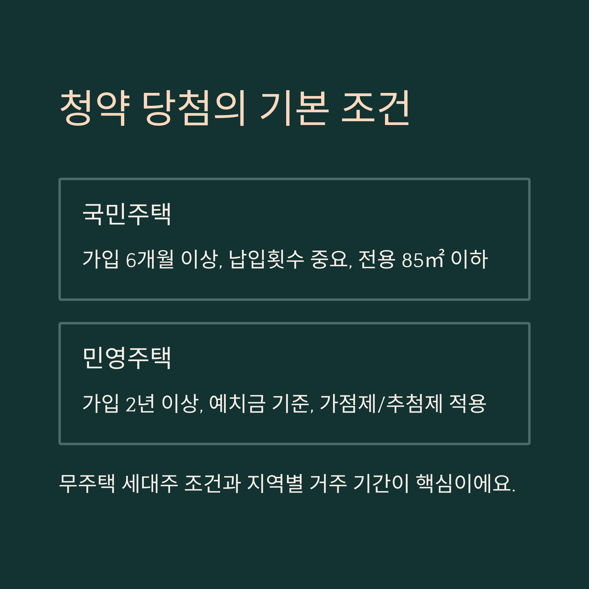 청약 당첨을 위해선 단순히 '운'만 믿어선 안 돼요. 기본적인 조건을 정확히 알고 있어야 제대로 도전할 수 있어요. 우선 청약통장 가입 기간과 납입 횟수가 핵심이에요. 특히 국민주택과 민영주택은 기준이 조금 달라서 구분해서 봐야 해요.