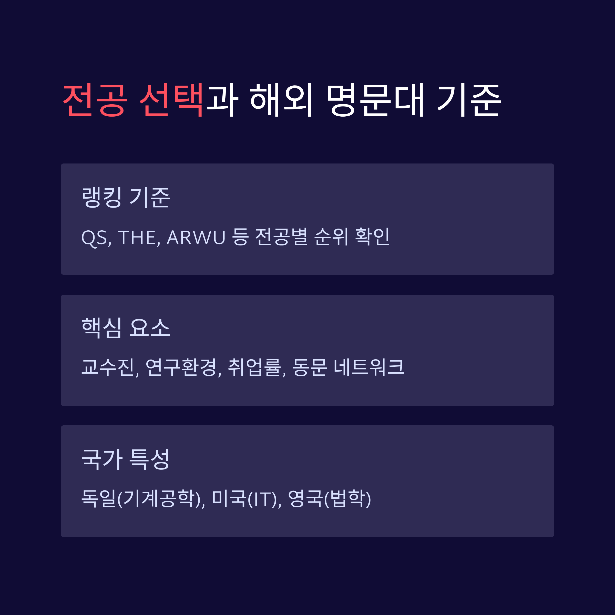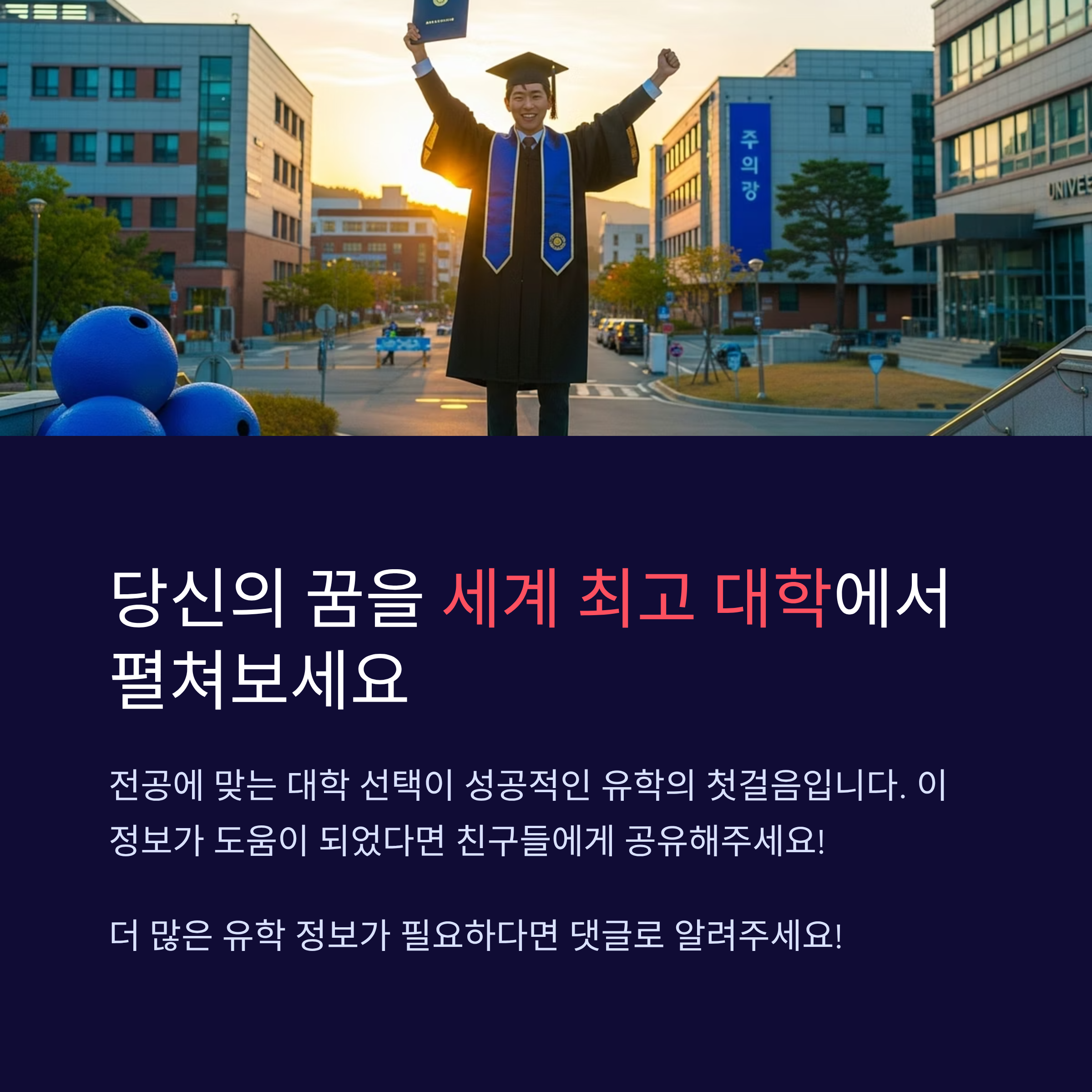해외 유학을 고민할 때, 전공에 맞는 학교를 선택하는 건 가장 중요한 결정 중 하나예요. 단순히 유명한 대학을 고르는 게 아니라, 내가 선택한 전공에서 어떤 대학이 실제로 경쟁력 있는 커리큘럼과 연구 환경을 제공하는지가 핵심이에요.