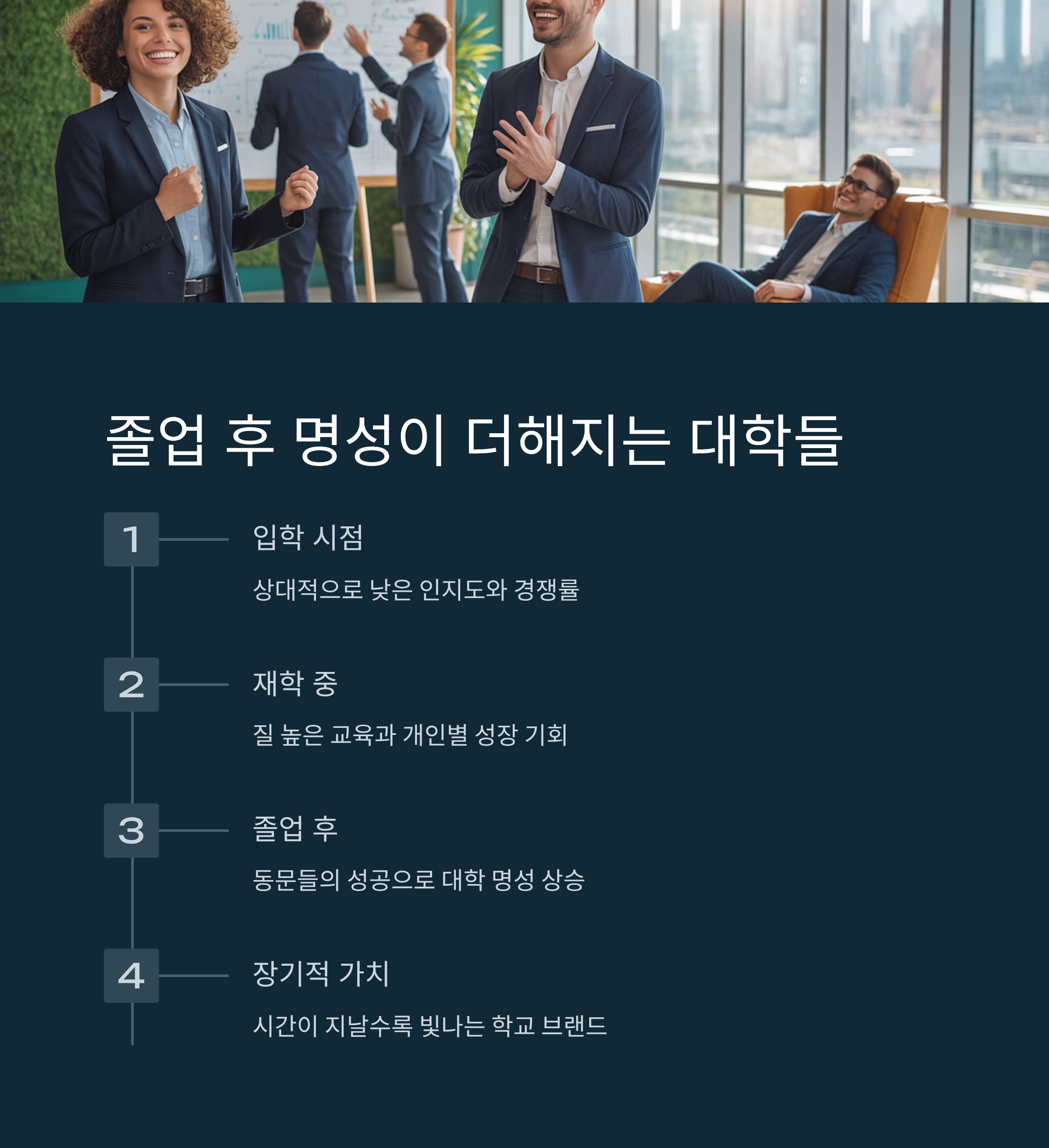 어떤 대학은 입학 당시에는 순위가 낮거나 덜 알려져 있지만, 졸업생들의 활약과 성과로 인해 시간이 갈수록 명성이 올라가는 경우가 있어요. 이런 대학들은 졸업 후 평판과 네트워크의 힘이 점점 더 커지면서 알게 모르게 '숨은 강자'로 부상해요.