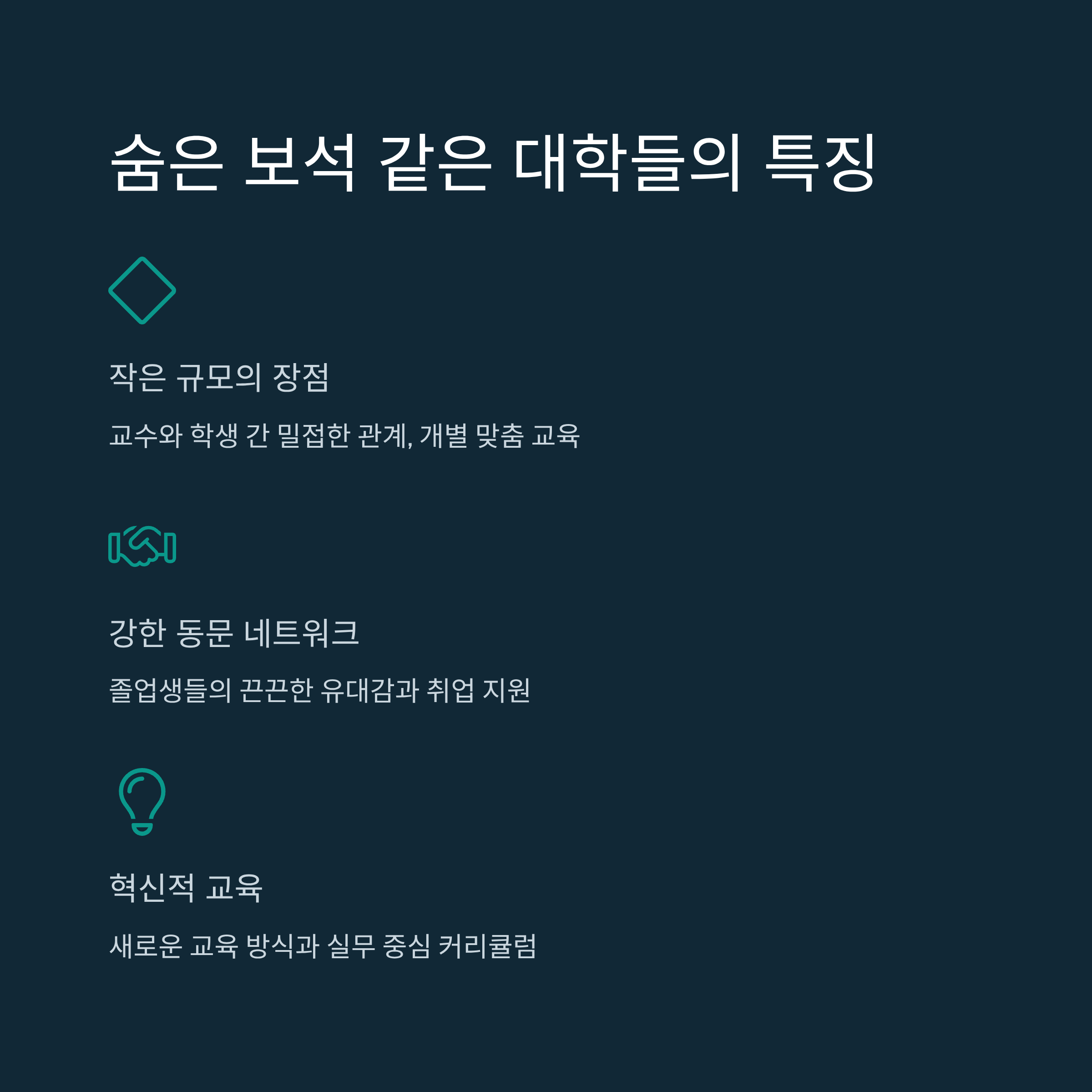 개인적으로 내가 생각했을 때 이런 '숨은 강자' 대학들은 자신만의 색깔과 철학이 확실하다는 점에서 정말 매력적이에요. '학생을 위한 대학'이라는 느낌이 강하게 들거든요. 교육의 본질에 충실한 모습이라고 할 수 있어요. 🎓