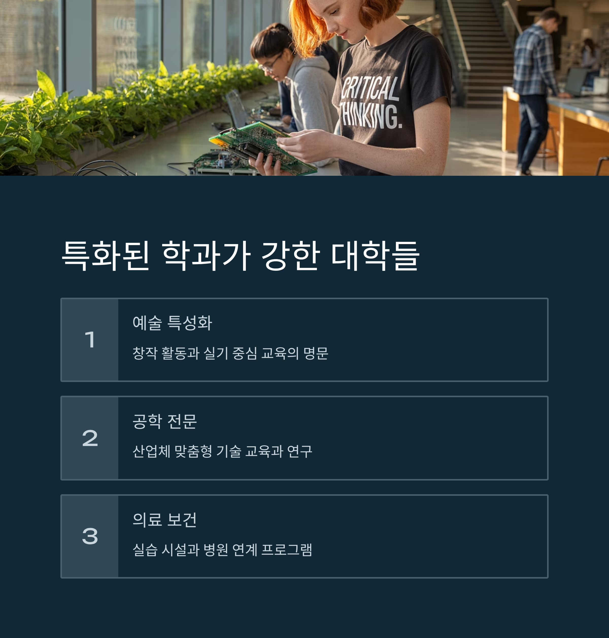 모든 대학이 모든 학문에 뛰어난 건 아니에요. 특정 분야에서만큼은 국내 최상위권 못지않은 전문성을 자랑하는 '강세 학과' 중심의 대학들이 있어요. 순위는 낮아도 해당 전공에서는 독보적인 교육을 제공하는 거죠.