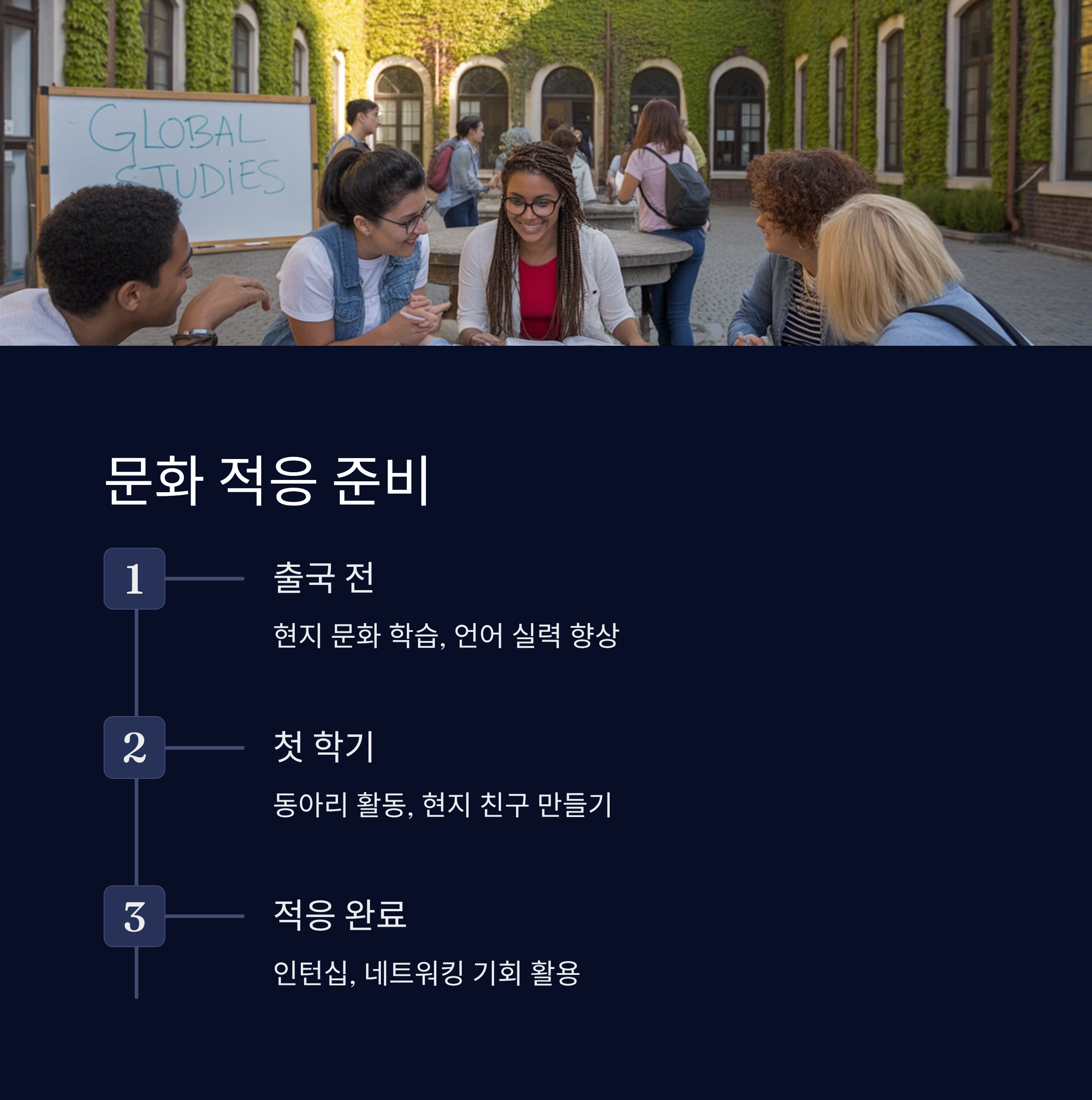 해외 대학에 합격한 후에도 새로운 환경에 적응하는 건 또 다른 도전이에요. 언어, 문화, 생활 방식 등 모든 것이 새롭기 때문에 누구나 처음엔 어색하고 불안할 수 있어요. 하지만 이 과정을 잘 이겨내면, 한층 더 성장한 자신을 만나게 될 거예요. 💪