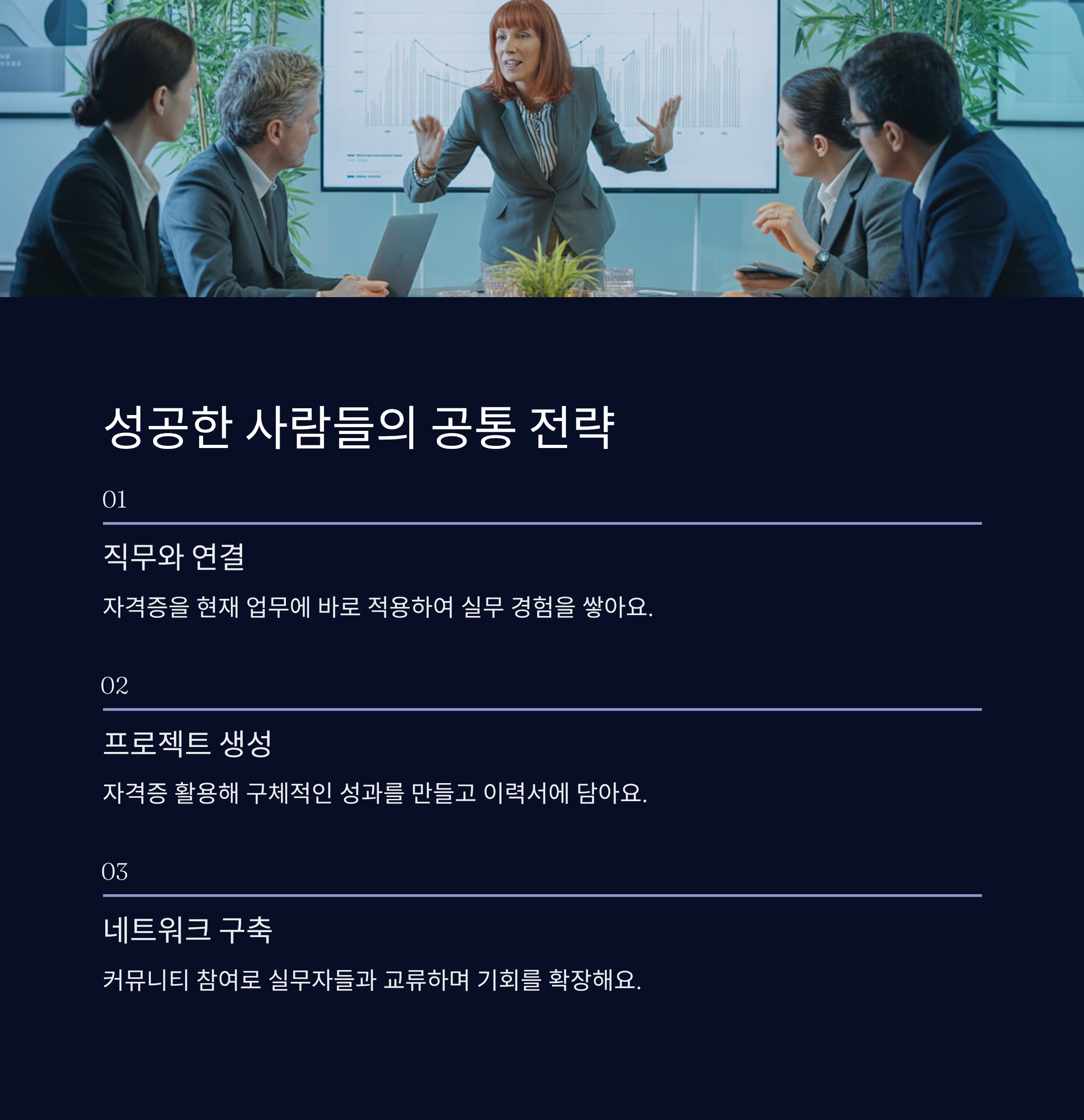 이처럼 자격증이 단순히 ‘기술을 배우는 수단’이 아니라, 새로운 커리어의 문을 여는 열쇠로 작용한다는 걸 보여주는 사례들이 많아요. 물론 노력이 필요하지만, 방향만 잘 잡으면 누구든 가능하다는 점이 이 이야기들의 핵심이에요!