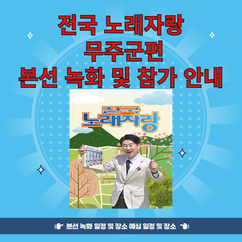 2024년 9월 3일 화요일, 무주읍 등나무운동장에서 본선 녹화가 진행됩니다. 녹화는 오후 2시에 시작되며, 무주군 주민들과 외부 관람객들이 한자리에 모여 즐길 수 있는 시간입니다. 녹화 당일 비가 올 경우에는 장소가 무주국민체육센터로 변경되니, 방문 전 날씨를 확인하고 이동 계획을 세우는 것이 중요합니다.